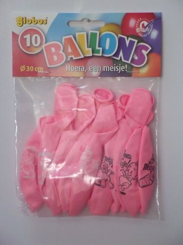 10 BALLONNEN HOERA EEN MEISJE ROZE NR 12 = 30CM DOORSNEE