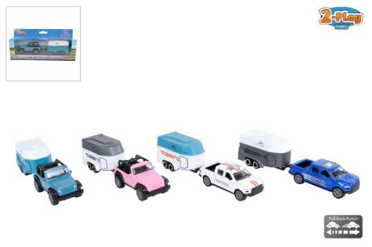 2-Play auto met Paardentrailer 16.5 cm Pull back, metaal
