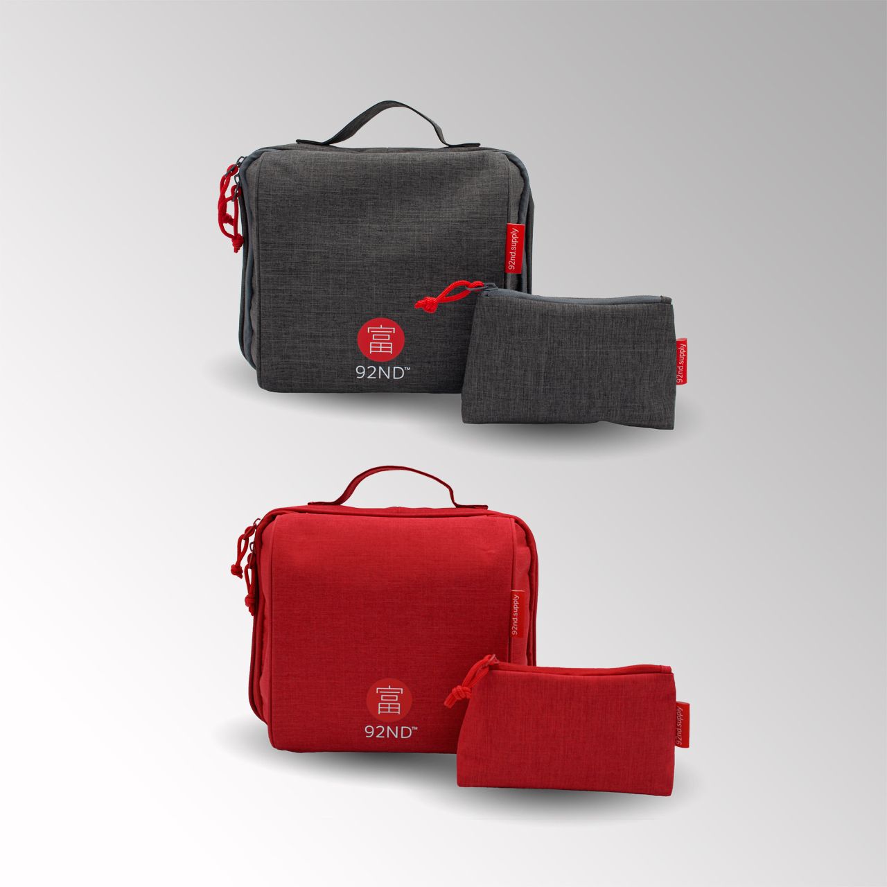 92ND Toilettas Doppio Grey 27x21x12 cm met Make-Up Bag & Laundry Bag
