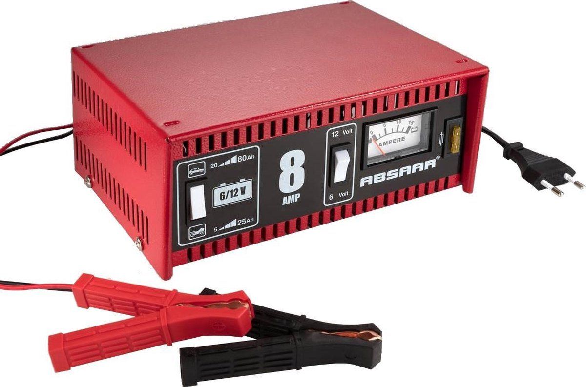 Absaar batterijlader 8 amp 6/12V (met stand motor/auto)