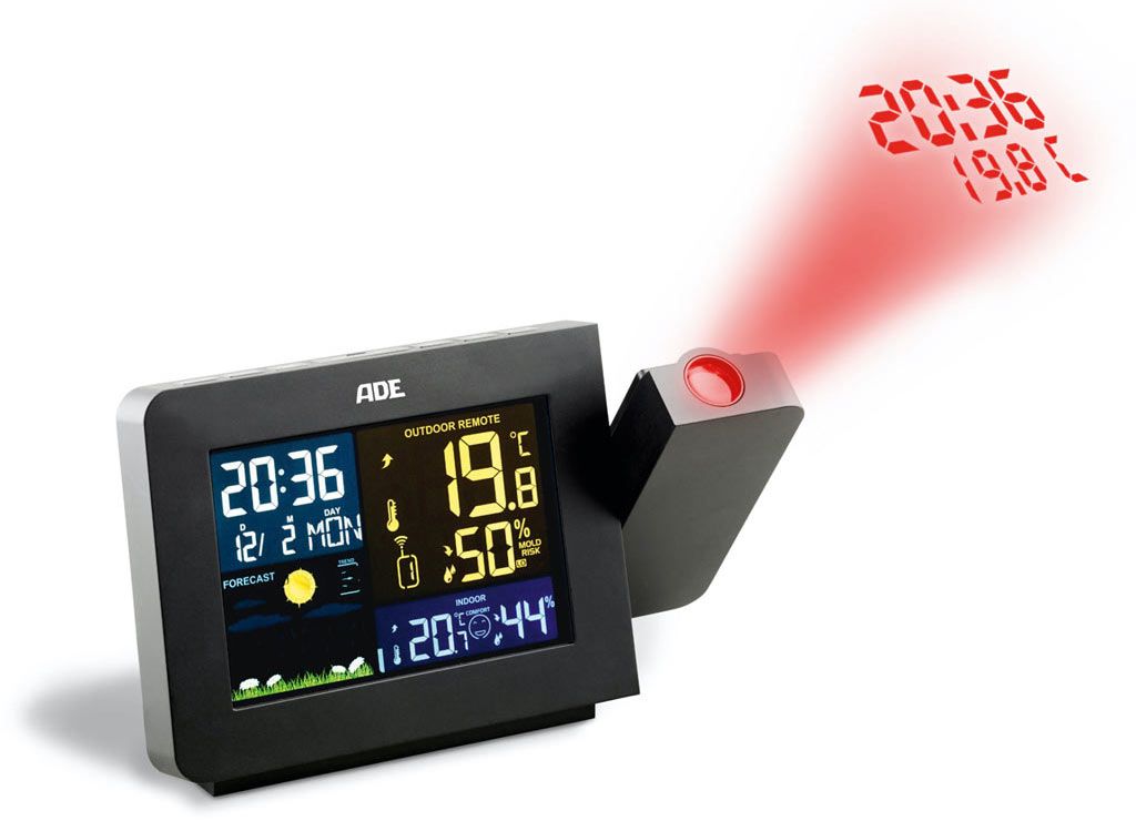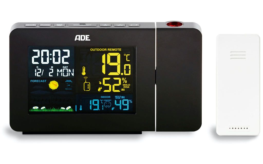 ADE Weerstation Digitaal met Projectie Zwart - Draadloze Sensor
