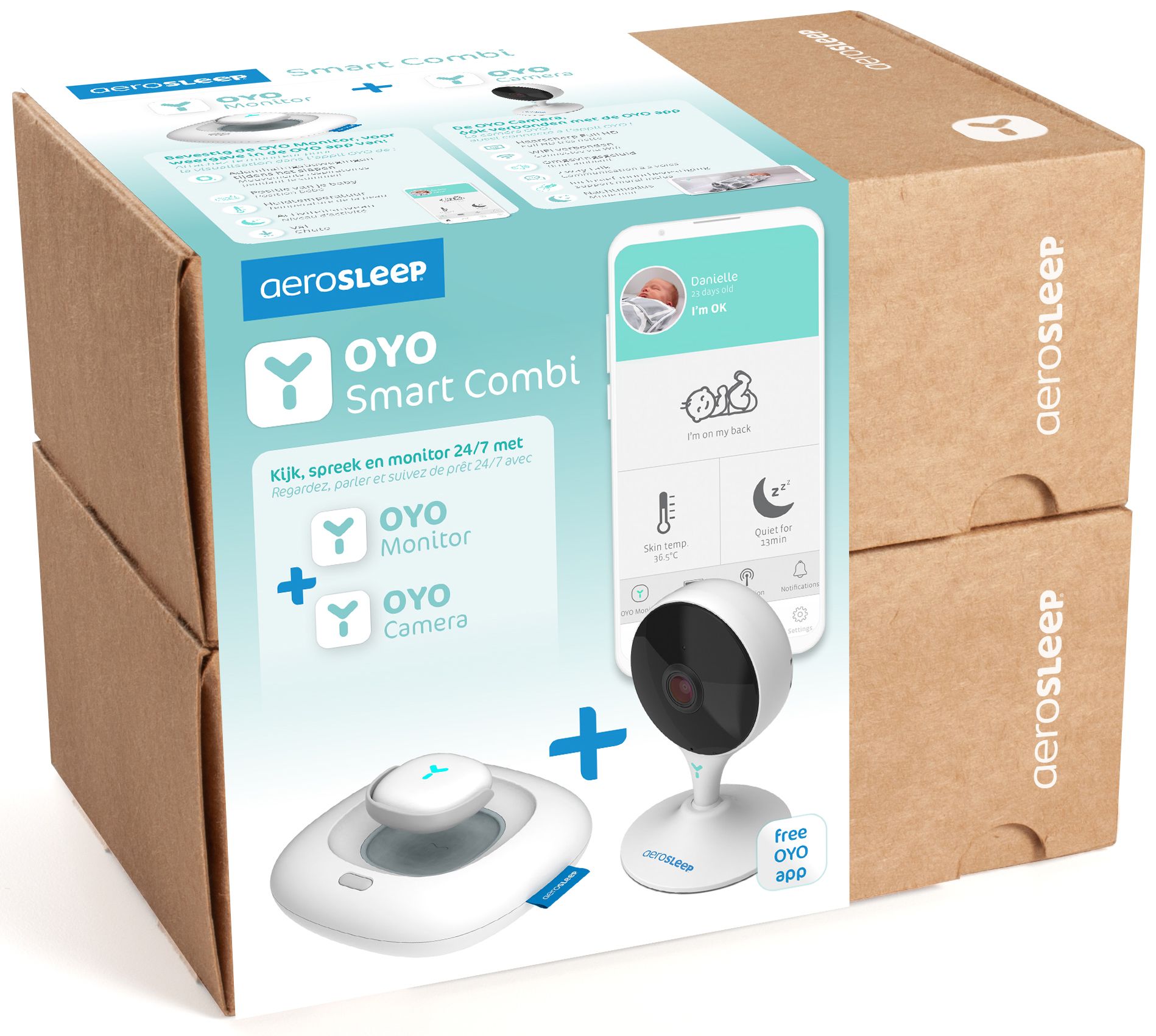 Met de OYO Smart Monitor & Camera wordt het leven van jonge ouders opnieuw een heel stuk makkelijker. Hij meet ademhalingsbewegingen, temperatuur, positie en activiteitsniveau én geeft die metingen realtime door in de OYO app. Wanneer er iets verandert in de waarden van hun kindje, krijgen ze meteen een melding via hun smartphone.