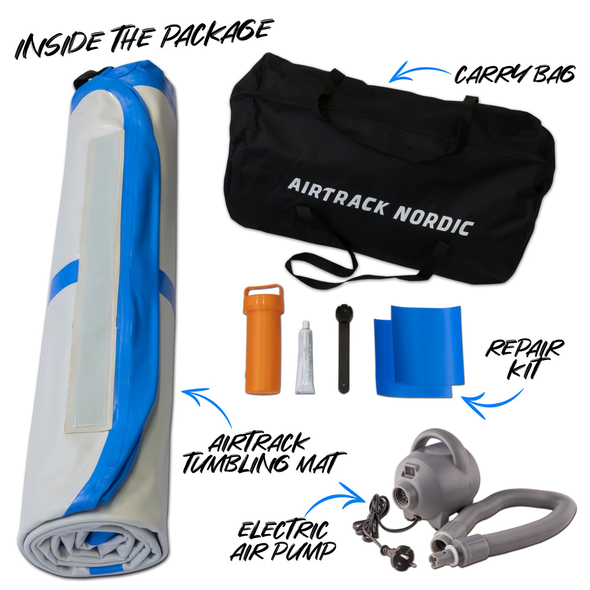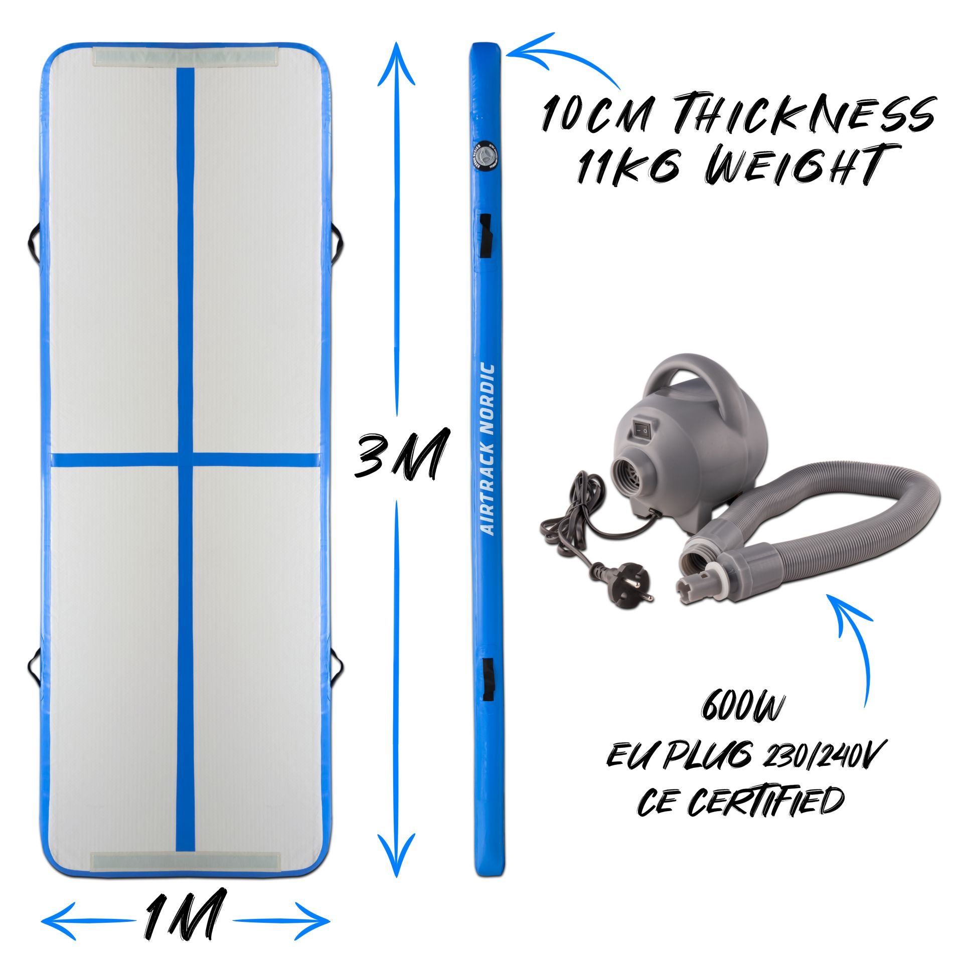 AirTrack Nordic Home 3m Blauwe turnmat met elektrische pomp en opbergtas