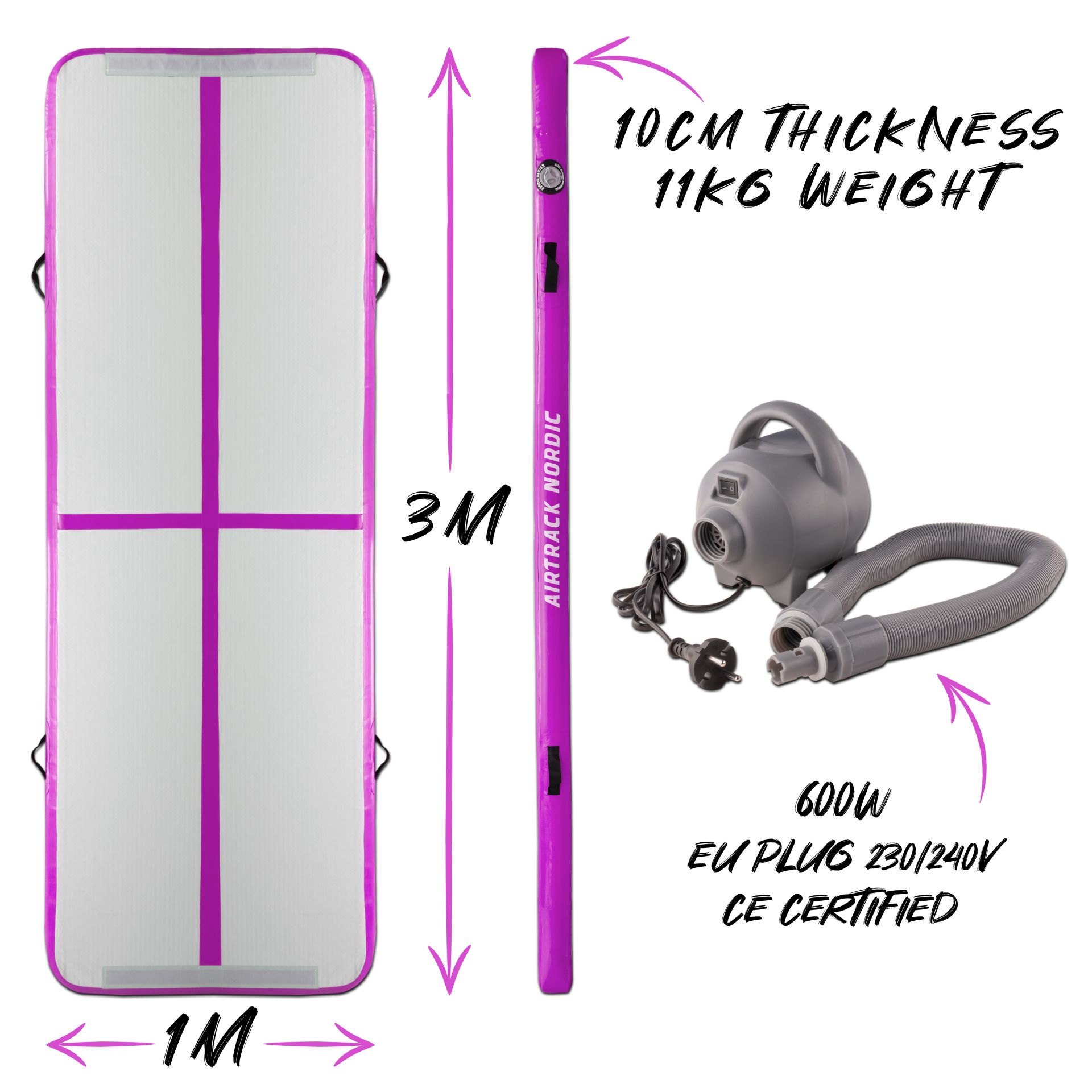 AirTrack Nordic Home 3m Roze turnmat met elektrische pomp en opbergtas