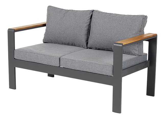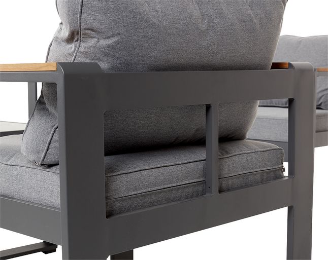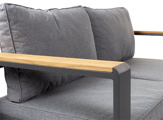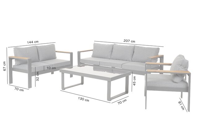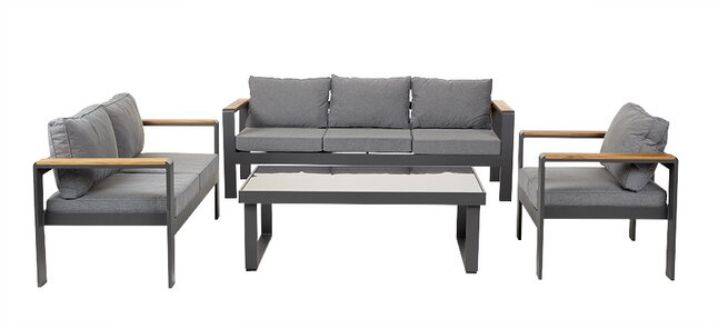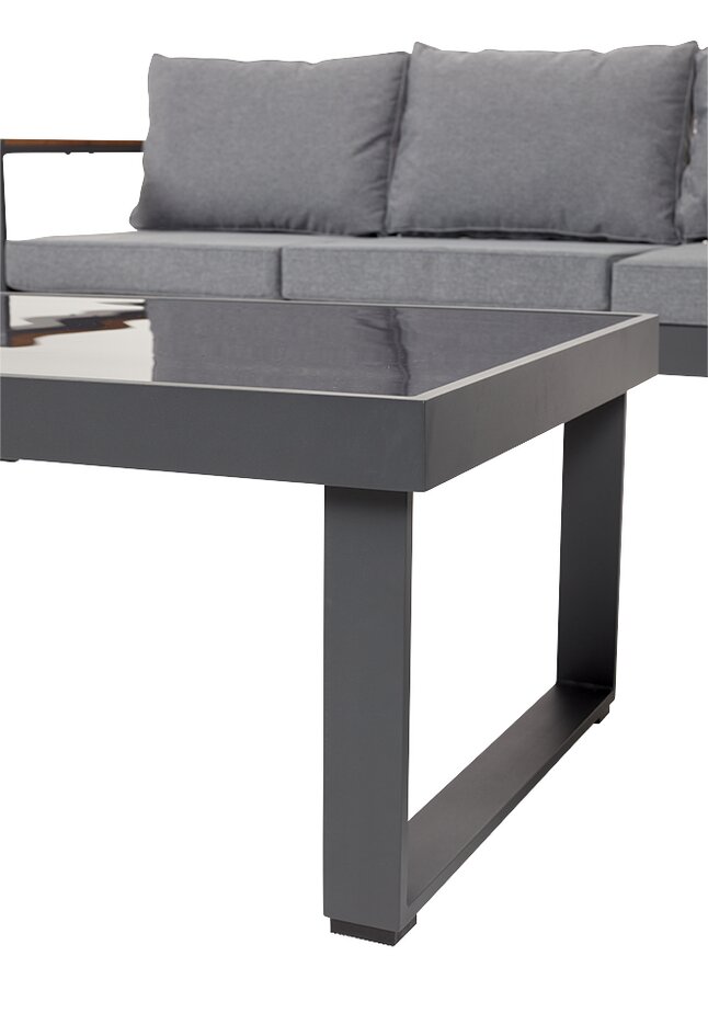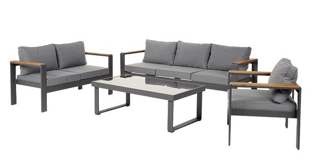 Alexia Loungeset Aluminium en Teak Tafel met Glazen Blad Kussens 10 cm