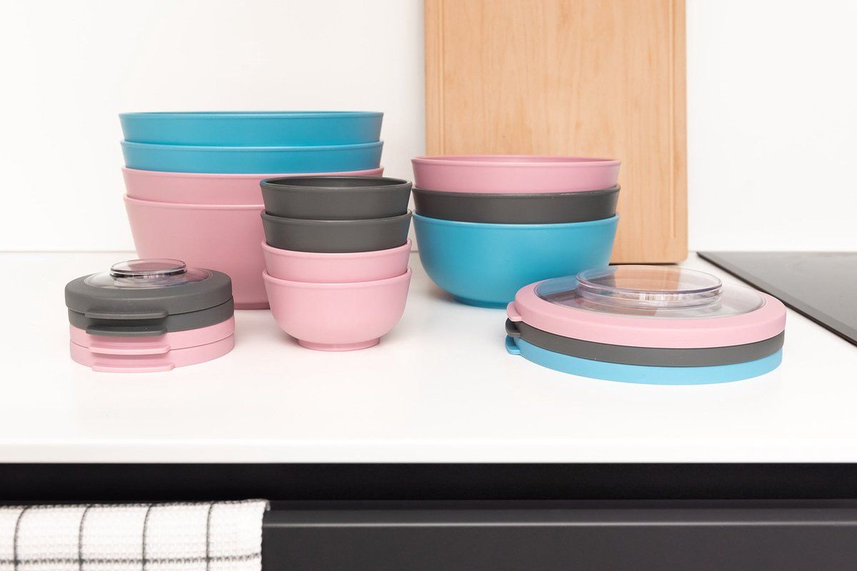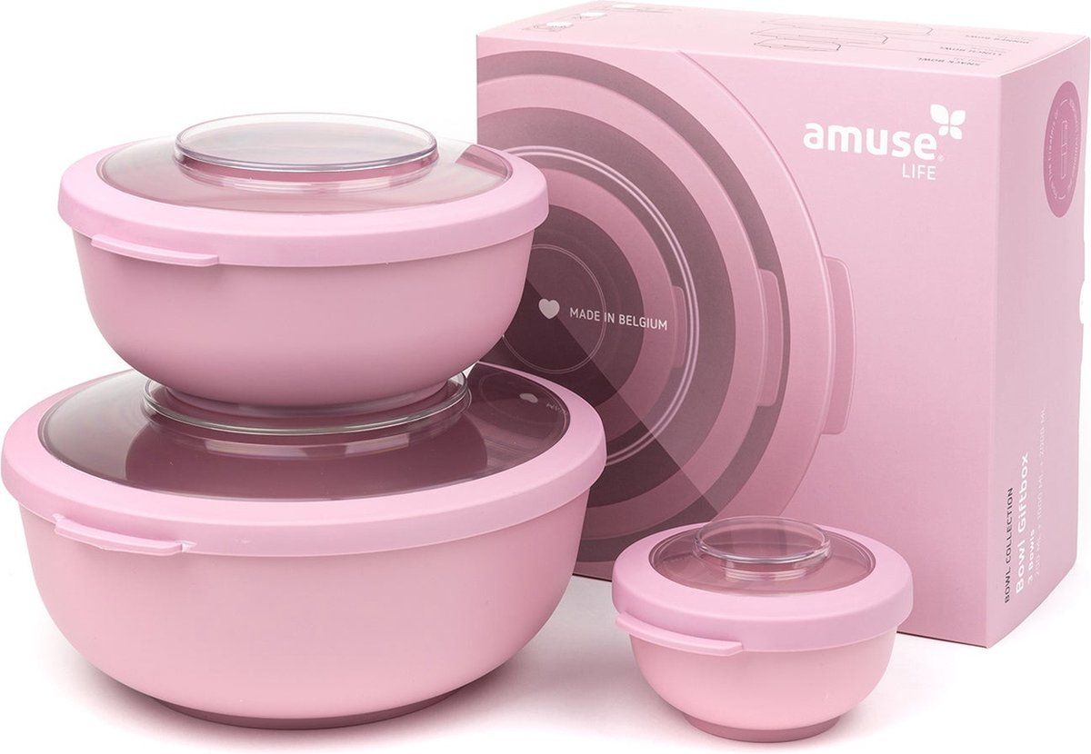 Amuse Bowl met Deksel Set van 3 stuks 0.2 l-1 l-2 l - Roze