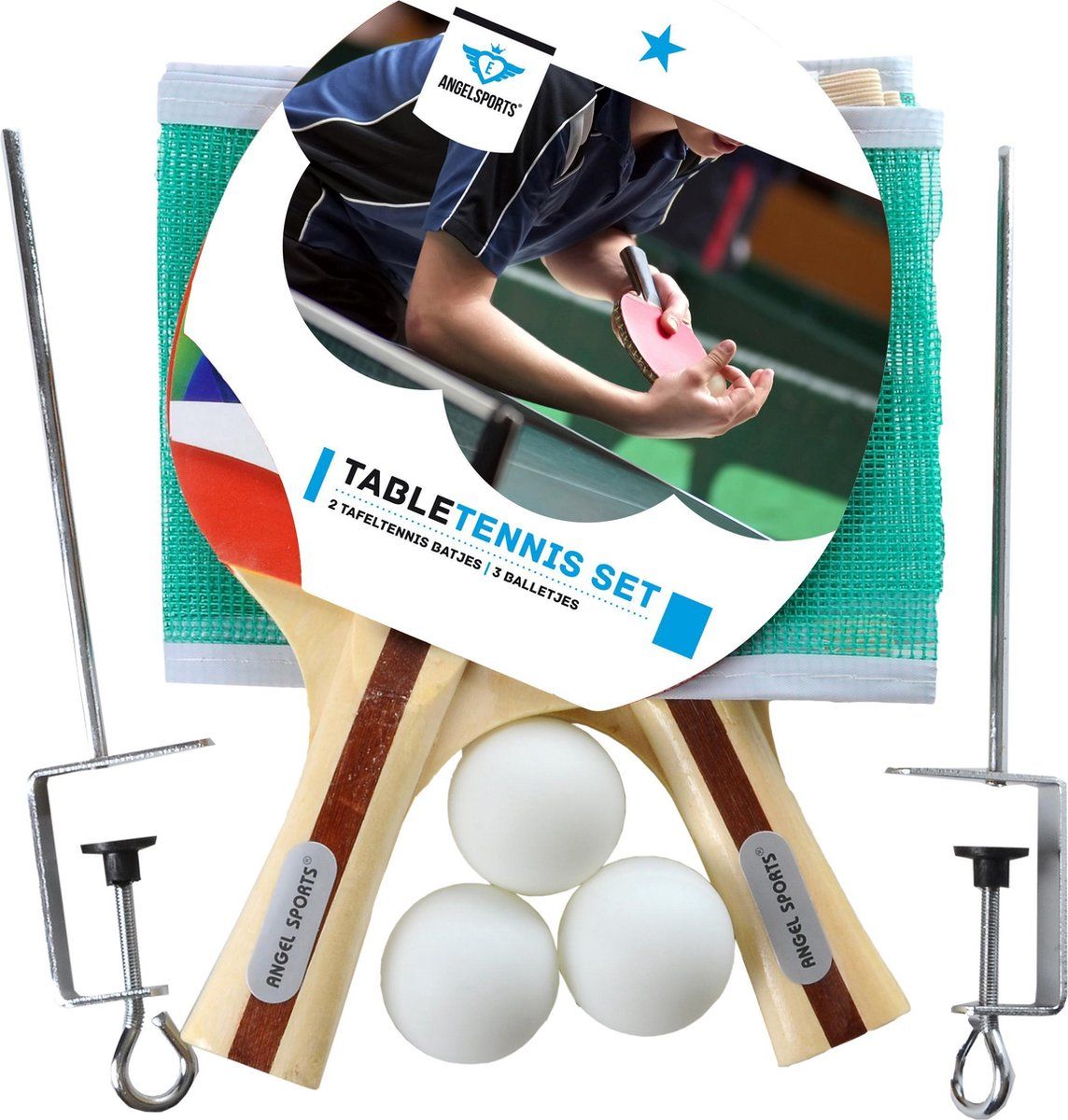 Angel Sports Tafeltennis Set, 2 Palletten 1 Ster met Net en 3 Balletjes