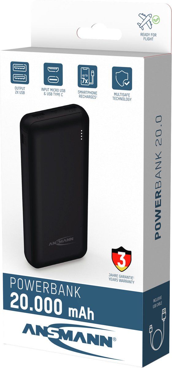 Ansmann Powerbank 20000 mAh 74Wh Zwart