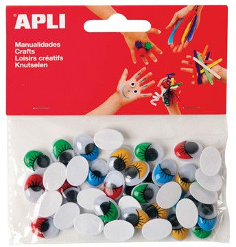 Apli Bewegende ogen ovaal. zelfklevend Assorti Kleur - 40 stuks - 16x12 mm