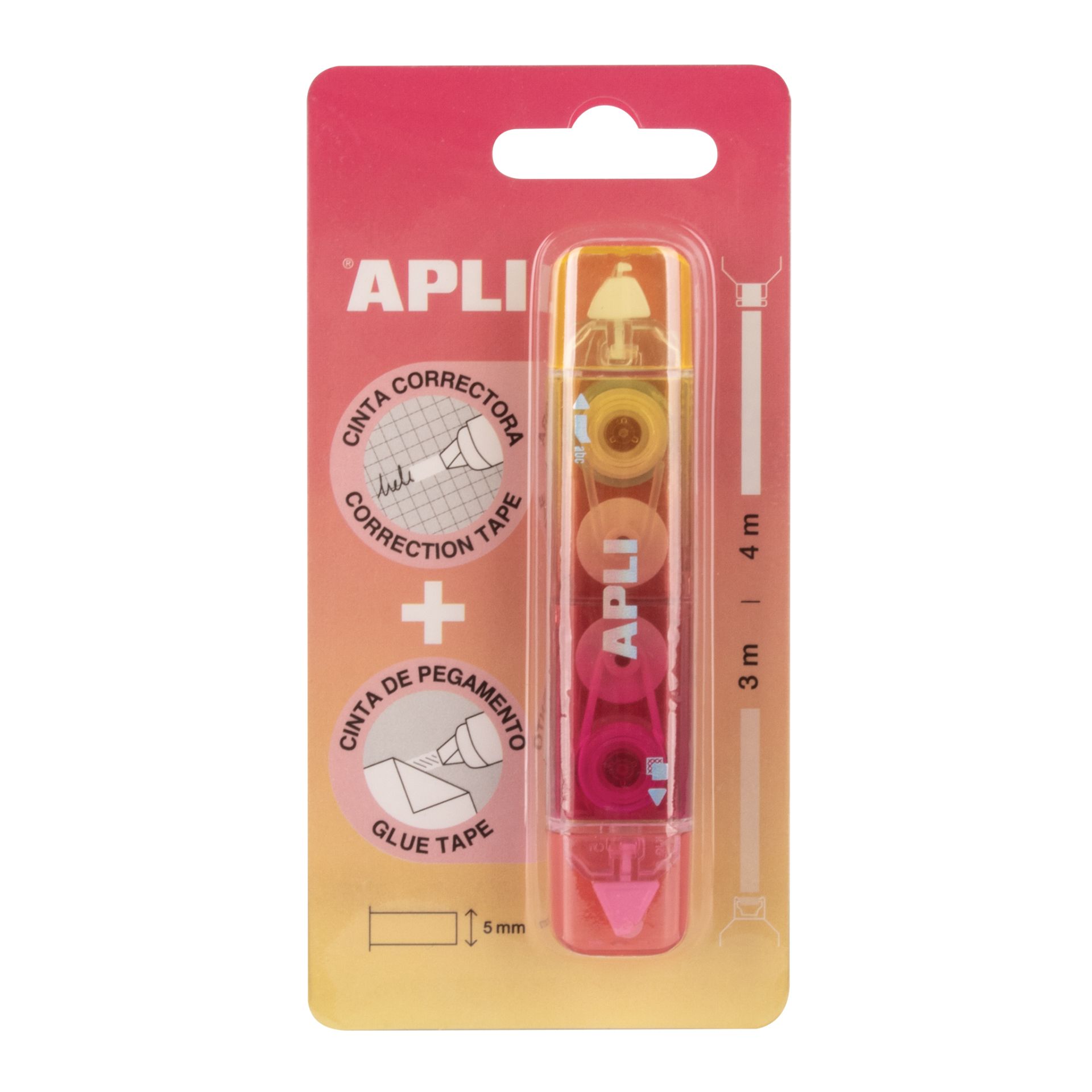 Apli Correctie-Lijmroller 2in1 Dubbele Punt Roze