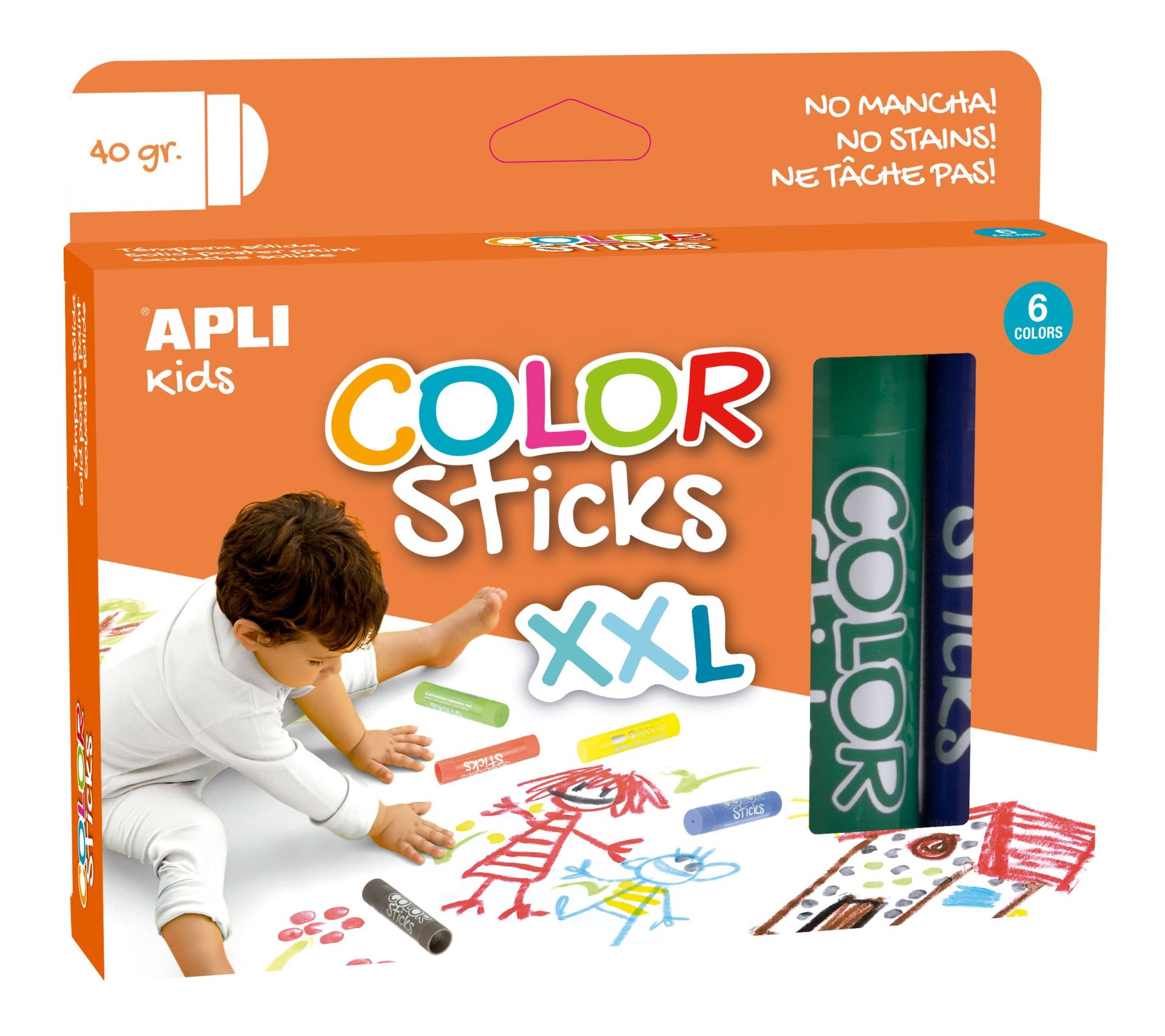 Apli Kids Color Sticks XXL - 6stuks Verfstiften 40gram - Speciaal Muren