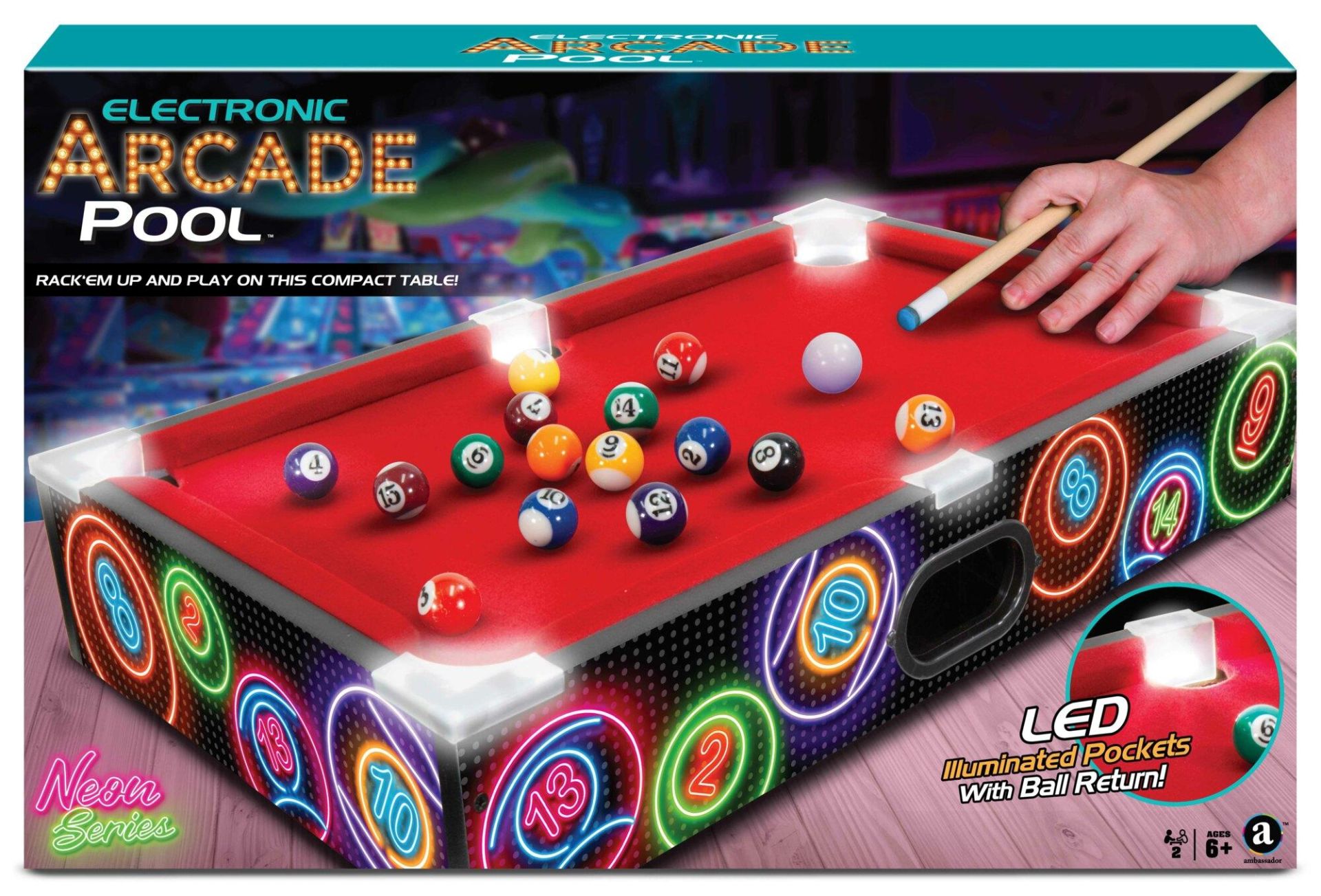 Arcade houten Pool Billiard Neon met licht, 51 X 32 cm, Tafelbiljard