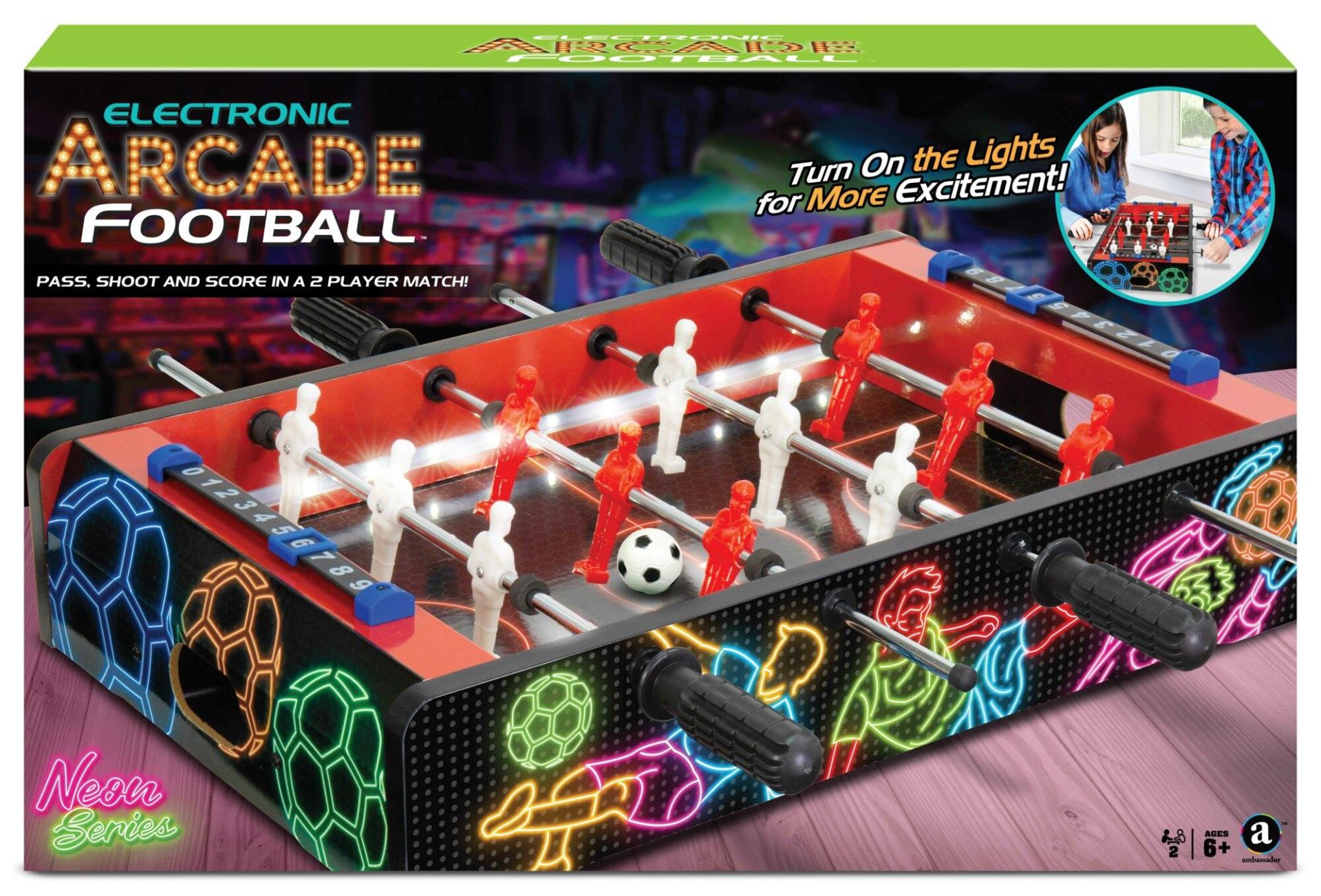 Arcade houten voetbalspel met licht, 51 X 32 cm, kikkervoetbal