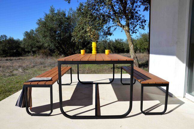 Arcane Marco Tuinset Tafel met banken Staal - Eucalyptus - Tafel 200x90cm