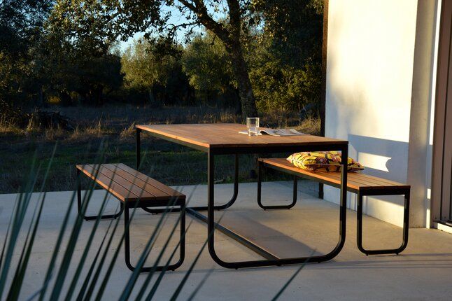 Arcane Marco Tuinset Tafel met banken Staal - Eucalyptus