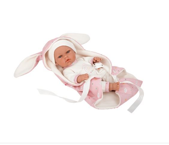 Arias Elegance Natal Pop 30 cm Roos met Konijn Wikkeldekentje