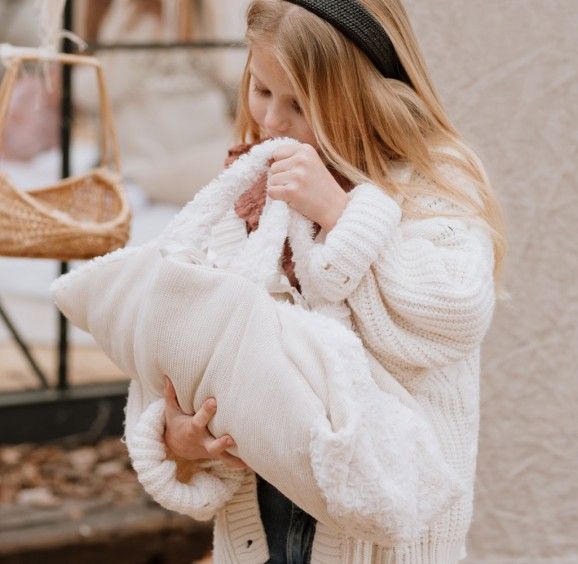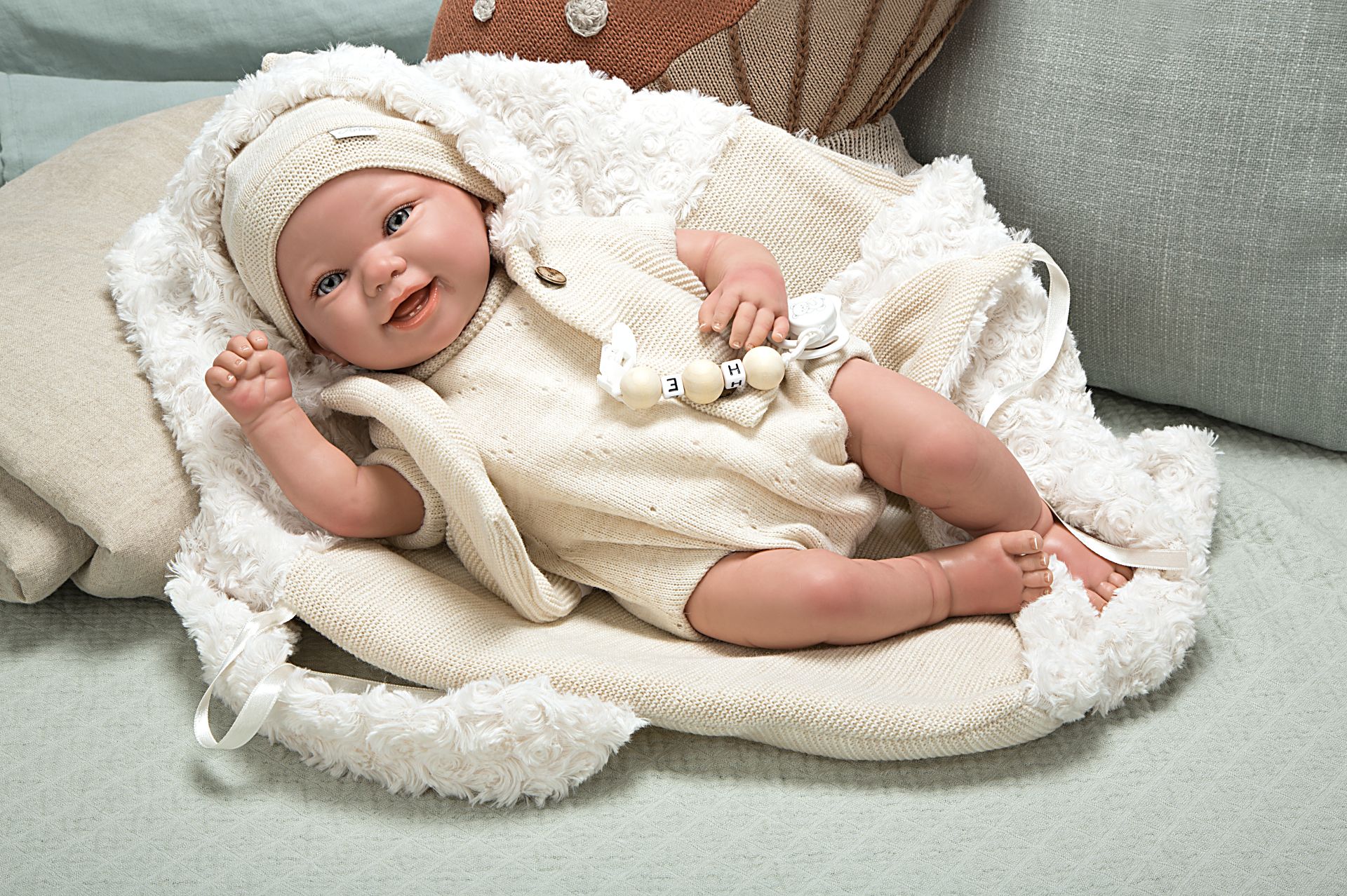 Arias Rebom Diego Pop 45 cm Beige met Draagzak, Fopspeen met ketting