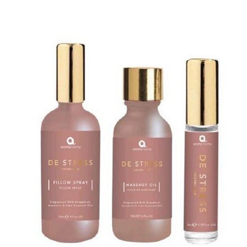 Aroma Home De-Stress Set 3-delig - Kussenspray-Massage Olie-Roller
