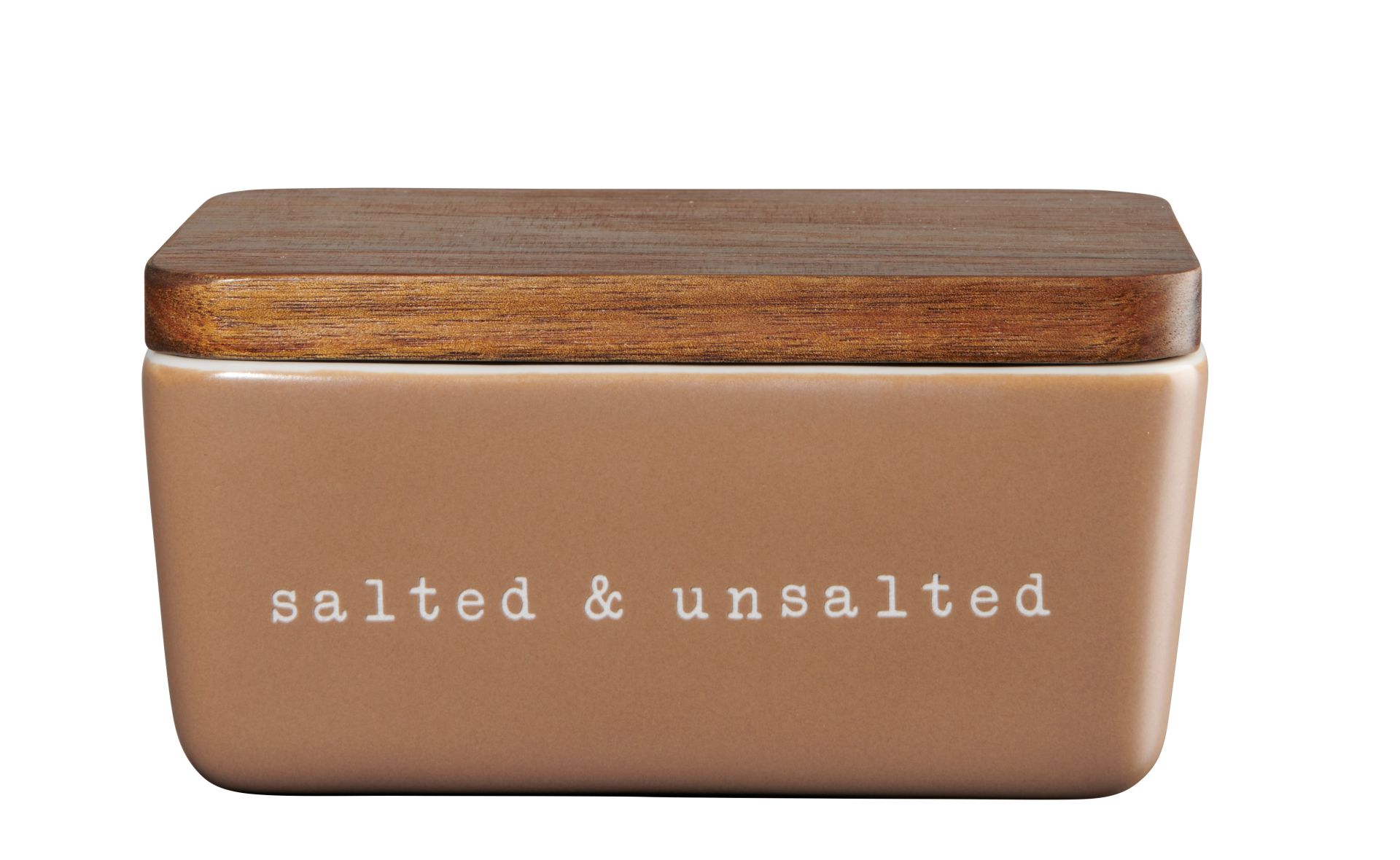 ASA Botervloot Hey! Salted & Unsalted 15x10x7.8 cm - New Bone China/Acaciahout