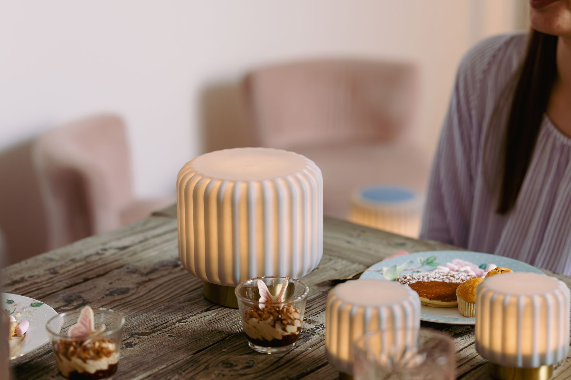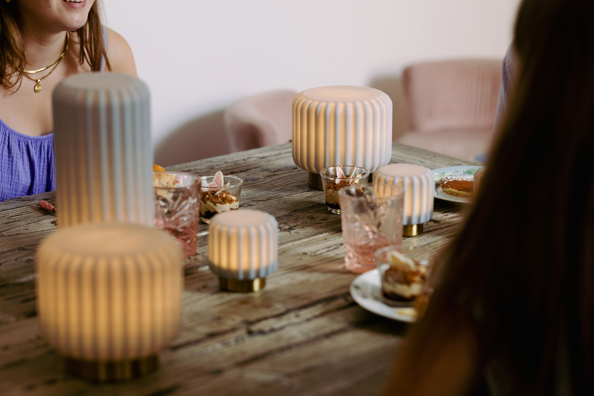 Atelier Pierre Tafellamp - Sfeerlamp Dentelles Oplaadbaar - Dimbaar Blueberry-Goud 29x12x12 cm
