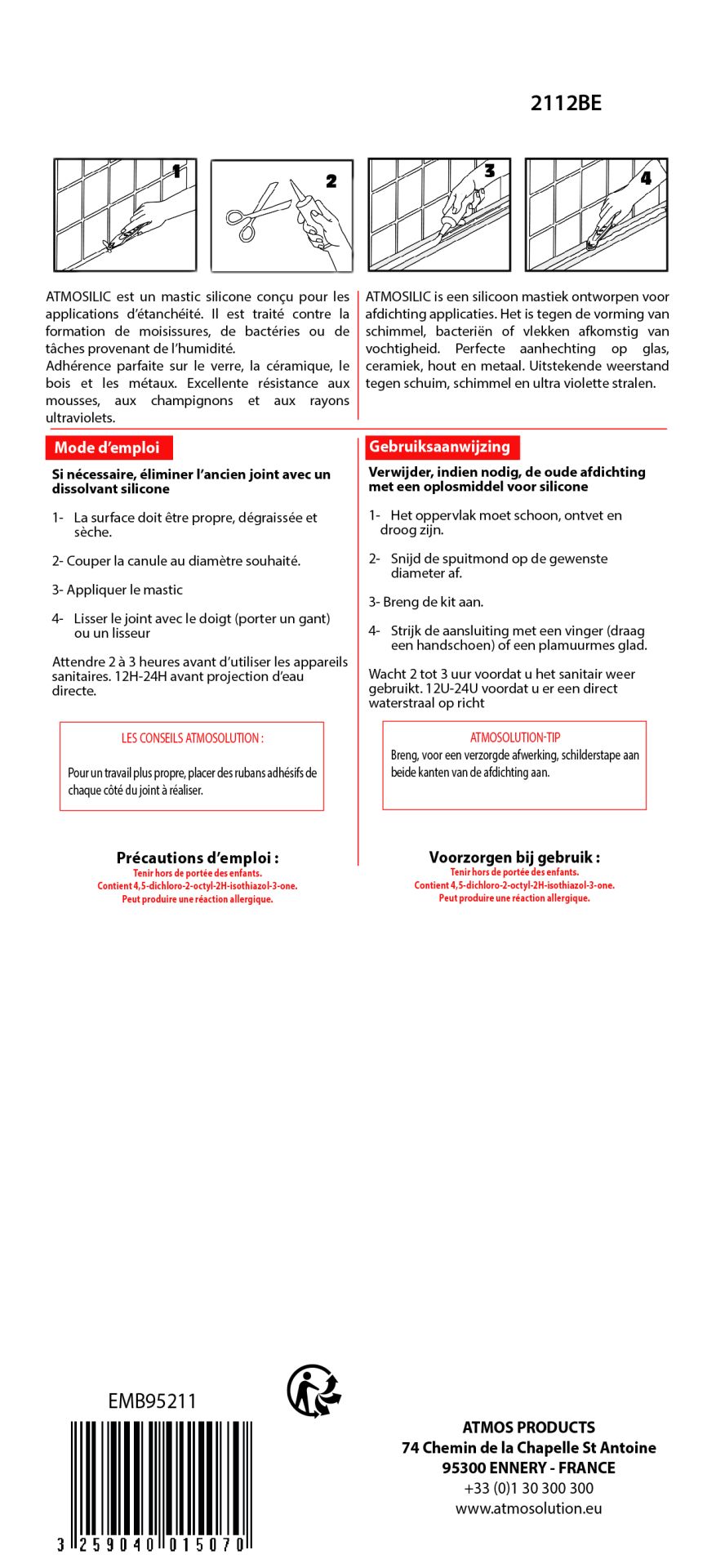 Atmosilic Siliconenmastiek 60 ml Dichting Anti Schimmel - Doorschijnend