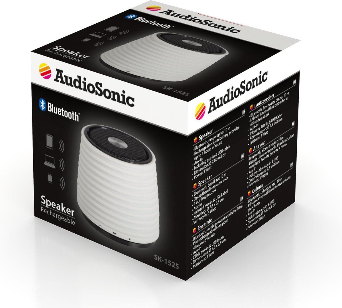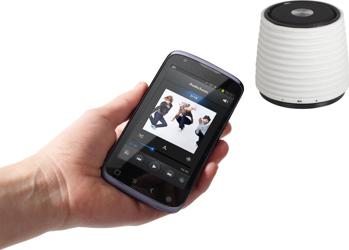 AUDIOSONIC OPLAADBARE BLUETOOTH SPEAKER ROND WIT, LI-ION BATT, 4 UREN