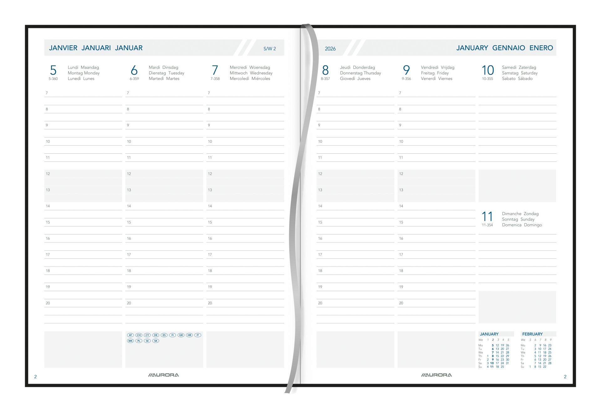Aurora Agenda 2026 Business Vivella 1week/2pag assorti 17.5x22.5 cm - per stuk
