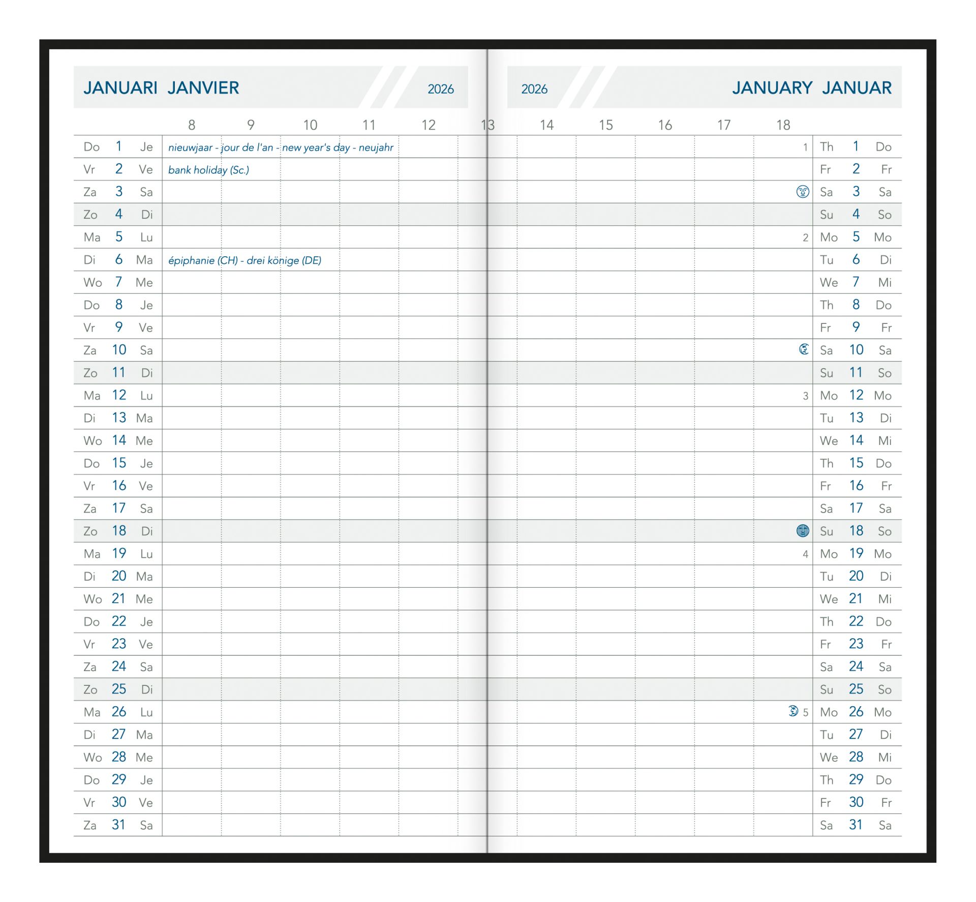 Aurora Agenda 2026 Foldplan Seta 1maand/2pag assorti 90x16.5 cm - per stuk