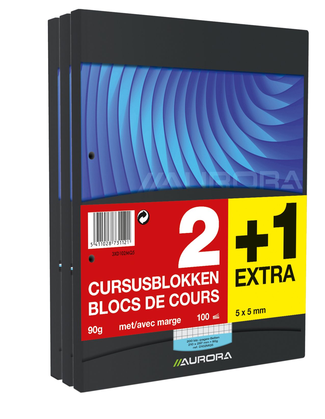 Aurora Mano Cursusblok A4 Geruit 100 vellen met Kantlijn - 2+1 Gratis