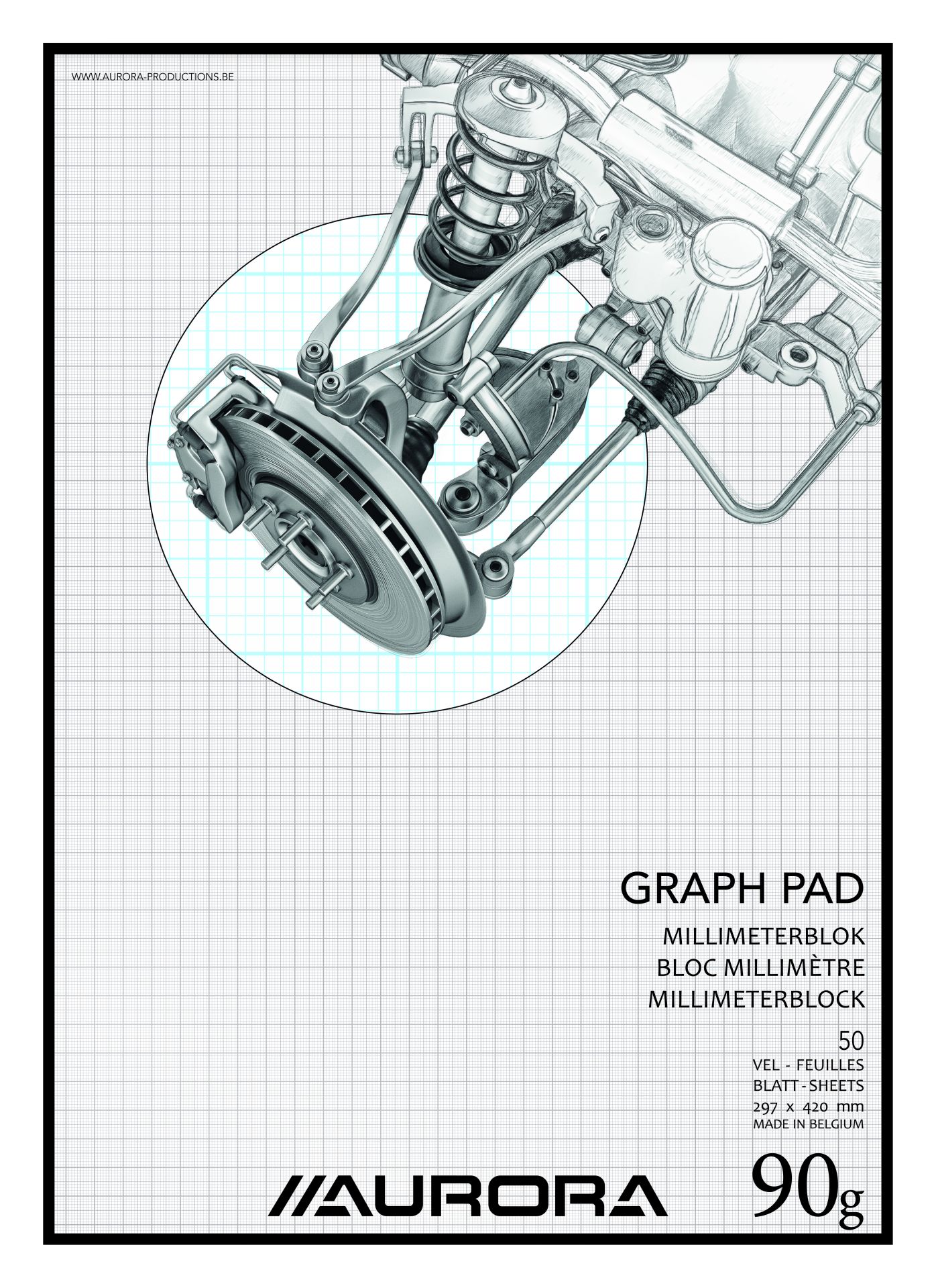 Aurora Millimeterpapier A3 Wit Houtvrij 297x420 mm - 90 g - 50 vellen - Blauw