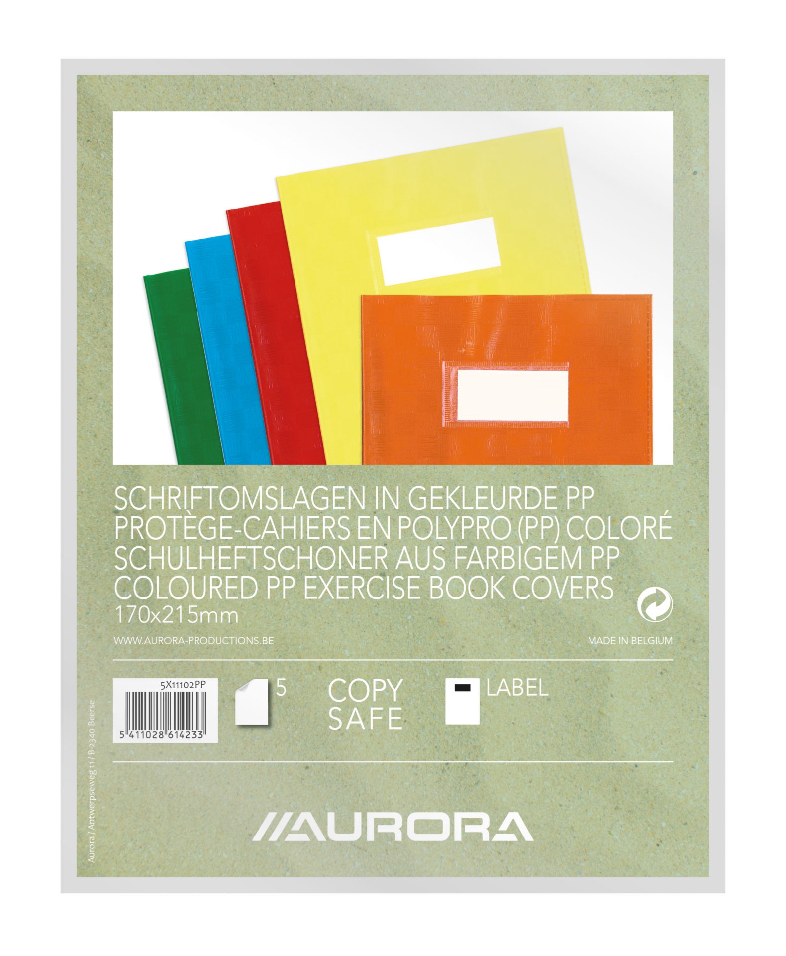Aurora Schriftomslagen PP A5 met Etiket 5 stuks in Verschillende Kleuren