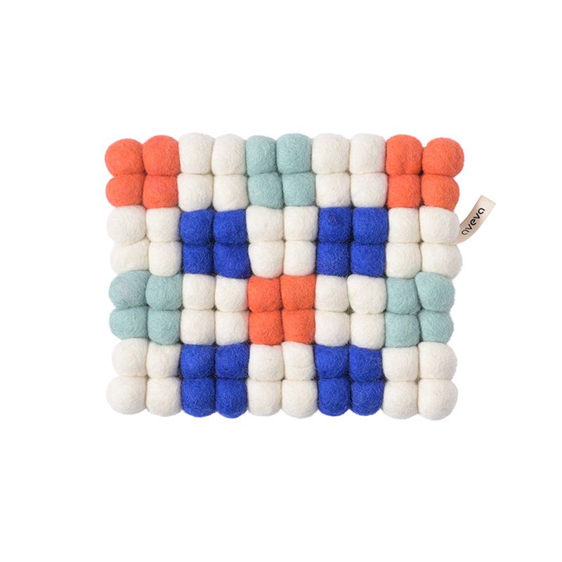 Aveva Potonderzetter Checked Coral/Electric Blue 22x19 cm - Wol