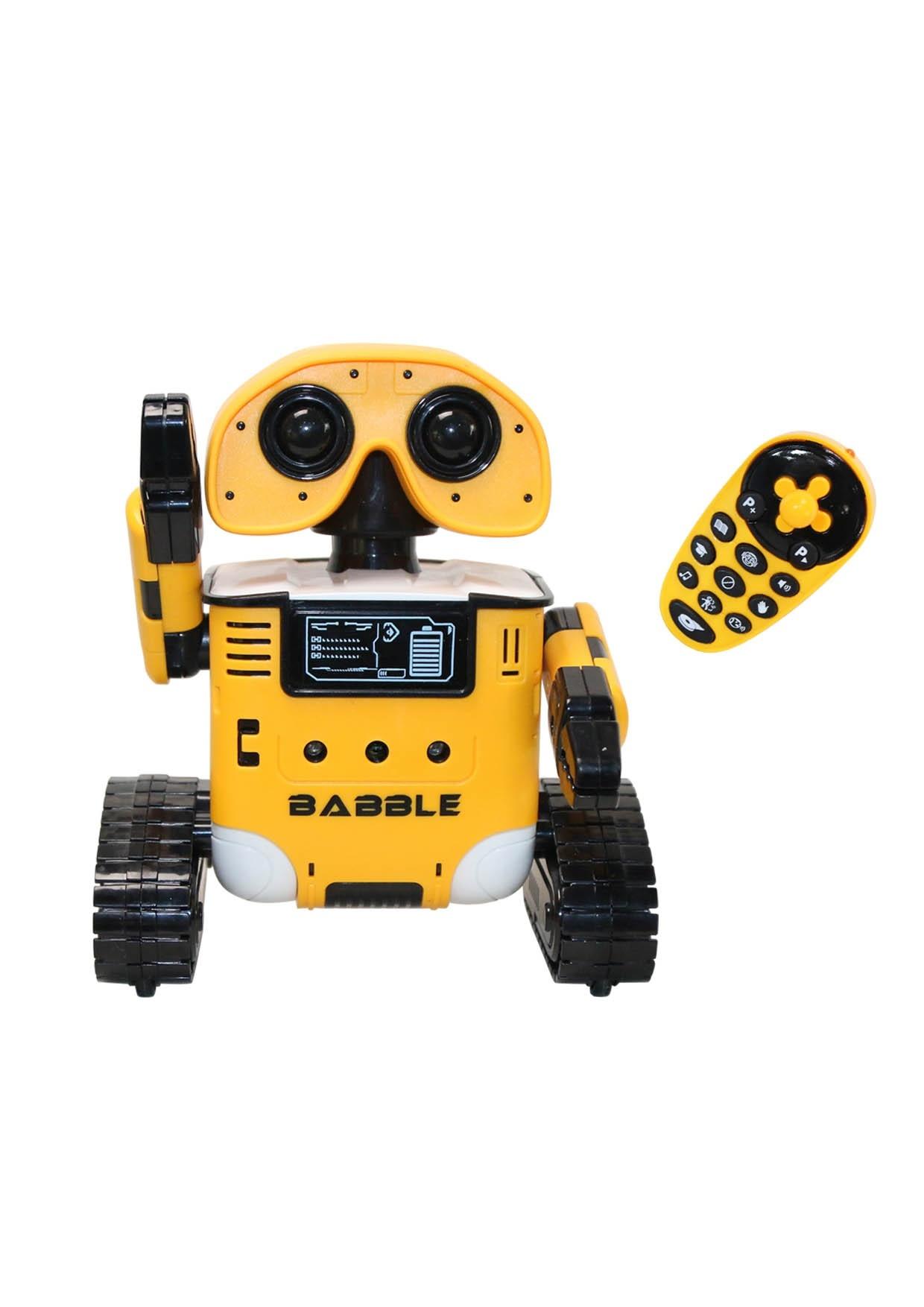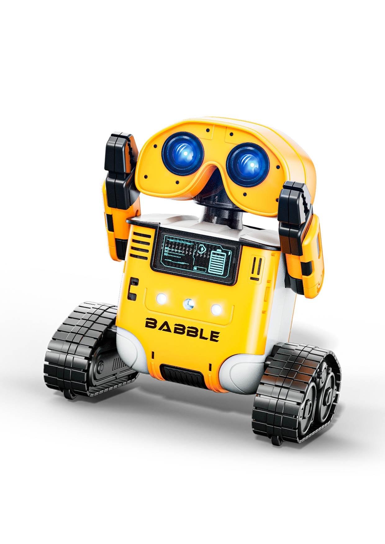 Babble Bot, gele robot programeerbaar, danst, reageert op beweging