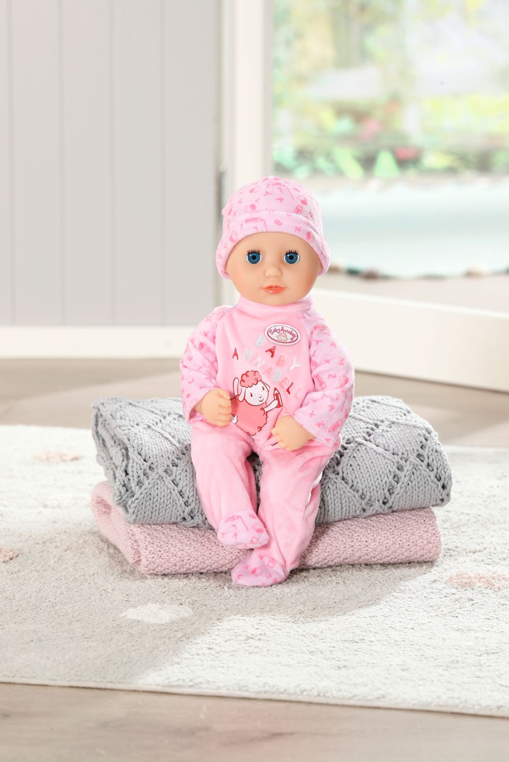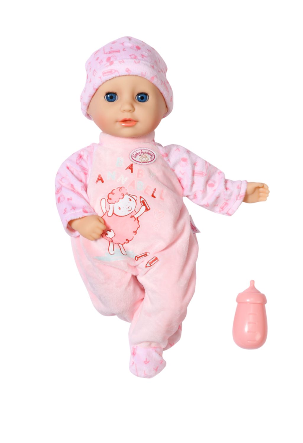 Little Annabell is 36 cm lang en weet al min of meer wat ze wil worden als ze groot is: schrijfster of misschien juf. Daarom houdt het schaap op haar roze speelpak een pen in zijn poot. De voeten, armen en muts zijn helemaal bedekt met letters. De ABC-outfit in easy-fit-stijl is zo ontworpen dat zelfs de kleinste handen hem met gemak aan en uit kunnen trekken.