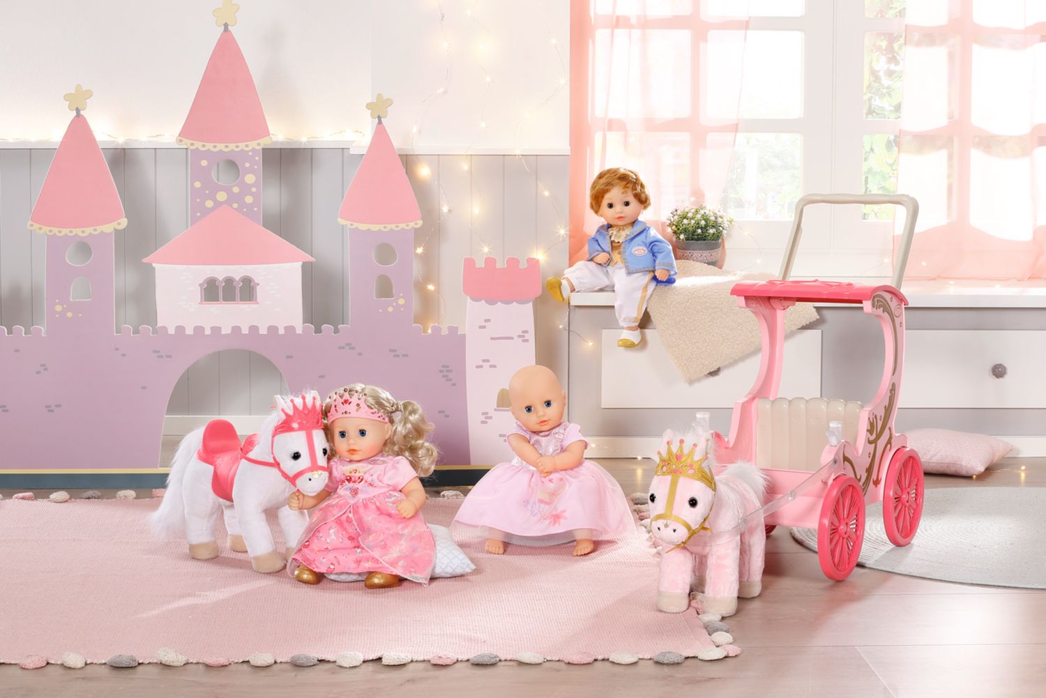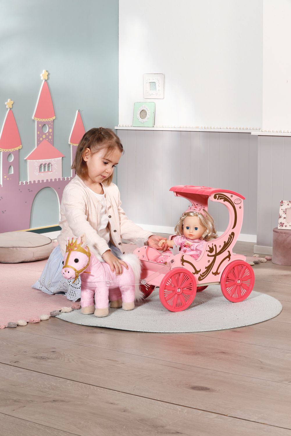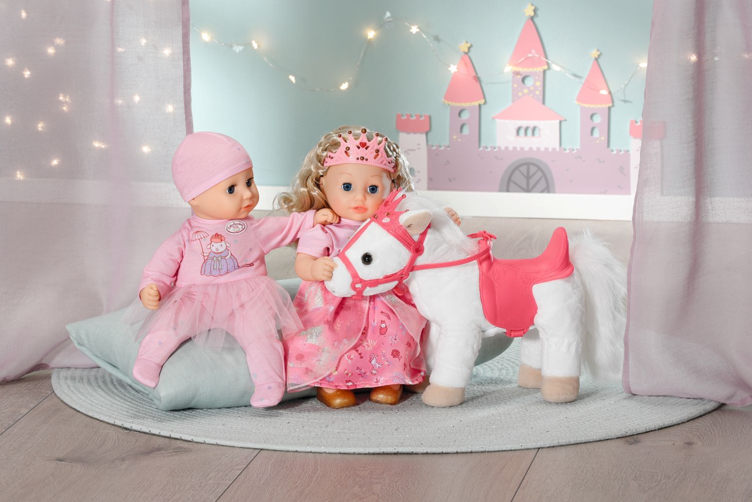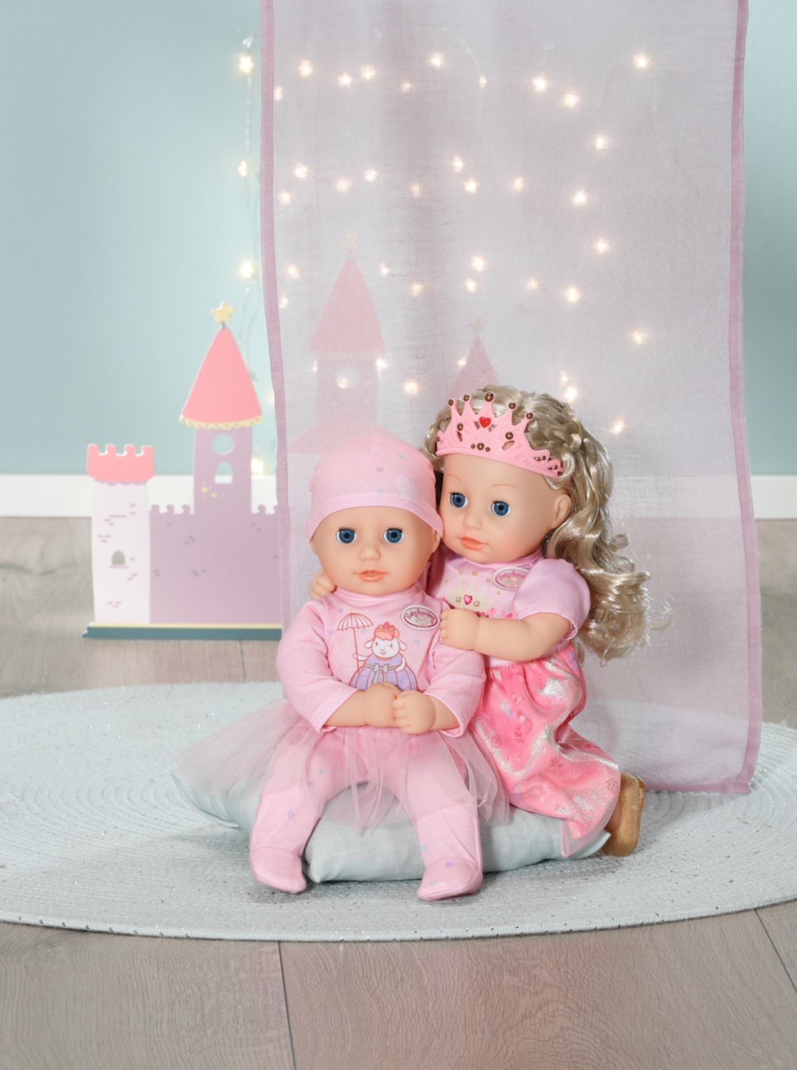 Deze pop van 30 cm heeft een lichaam met zachte vulling en haar van hoge kwaliteit. Ze heeft haar eigen haarborstel bij zich, zodat jij mooie prinsessenkapsels kunt creëren. Om het af te maken, kun je haar de tiara met glinsterende edelstenen opzetten. Haar glanzende, gouden ballerina's piepen onder haar magische, roze jurk met een overrok van tule uit. De japon is zo ontworpen dat zelfs de kleinste handen hem met gemak aan en uit kunnen trekken.