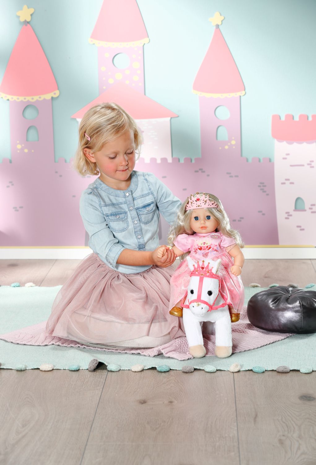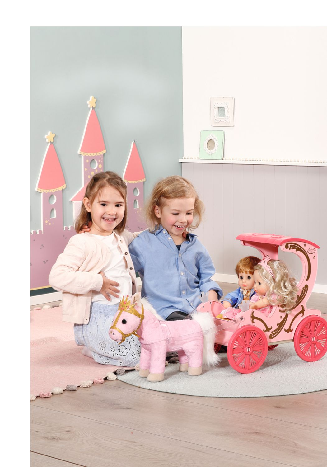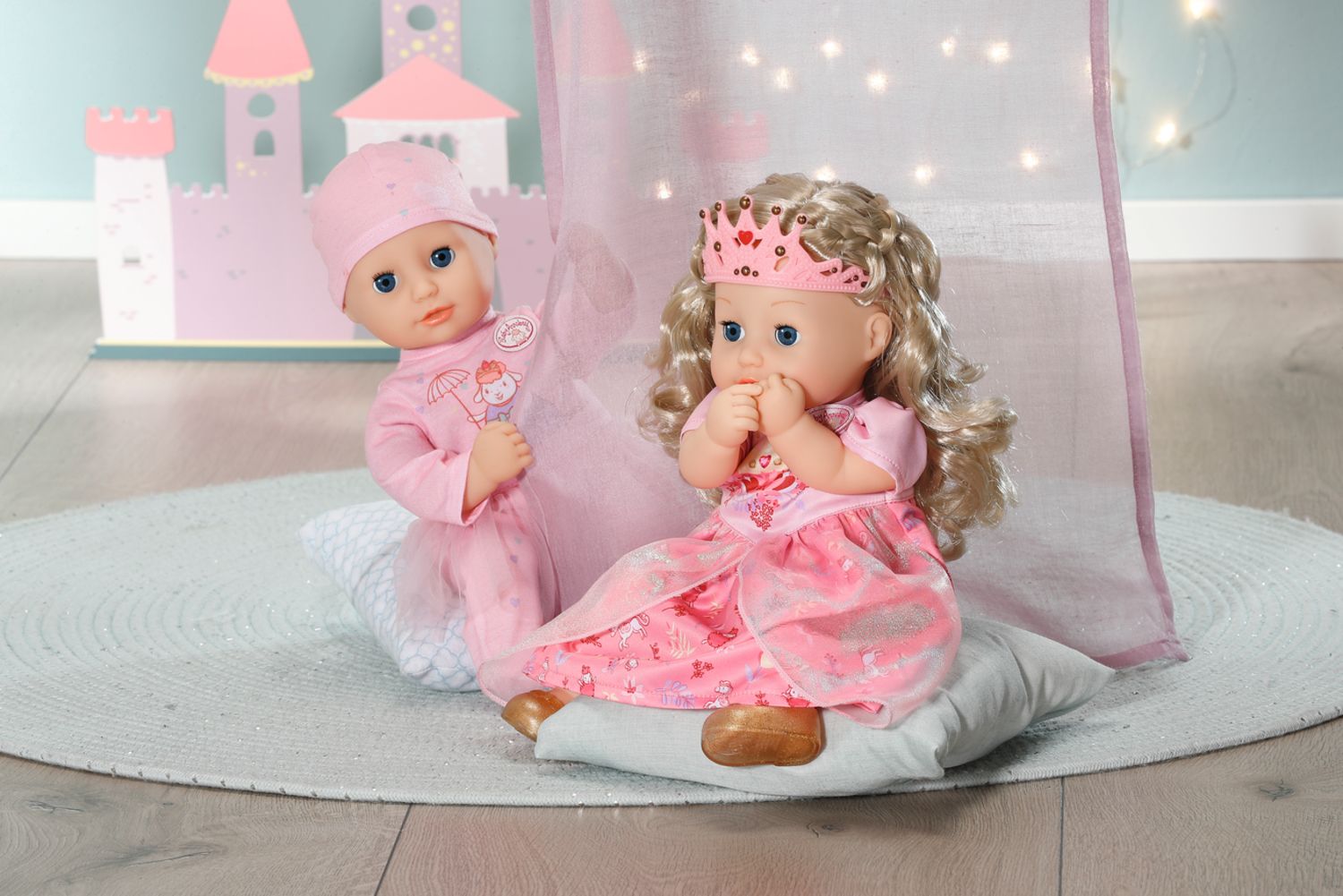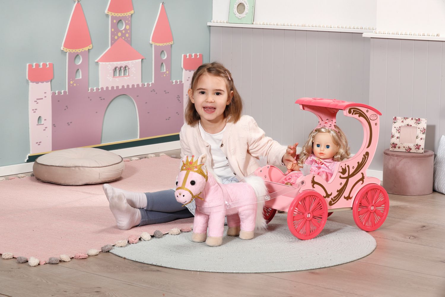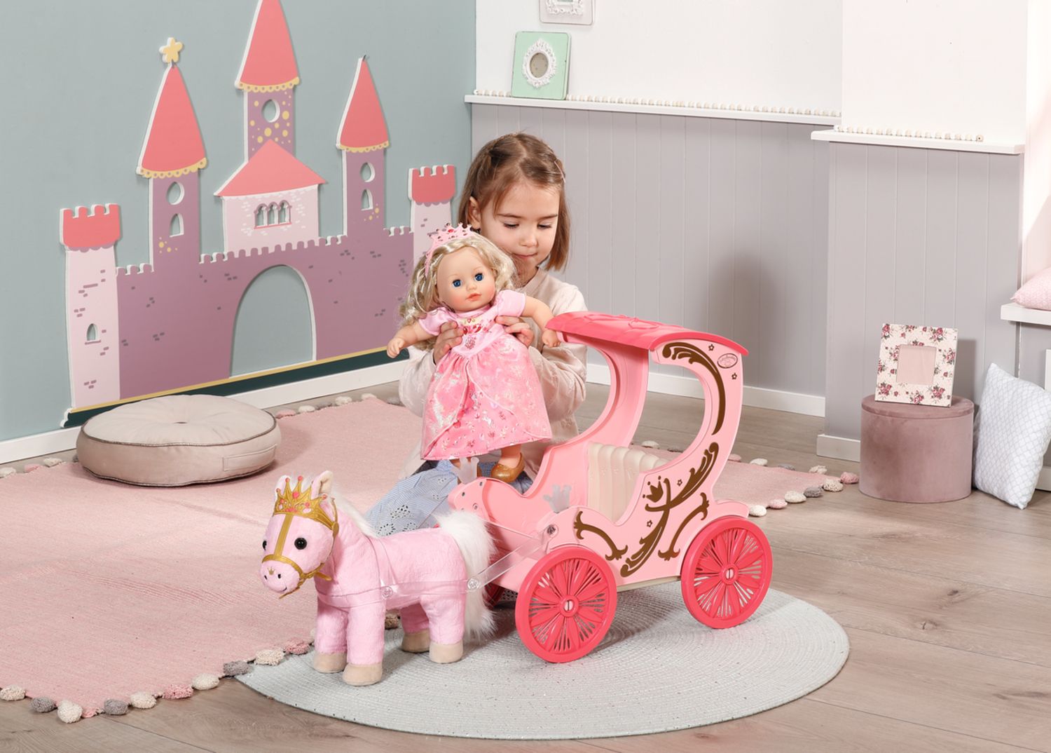 Deze pop van 30 cm heeft een lichaam met zachte vulling en haar van hoge kwaliteit. Ze heeft haar eigen haarborstel bij zich, zodat jij mooie prinsessenkapsels kunt creëren. Om het af te maken, kun je haar de tiara met glinsterende edelstenen opzetten. Haar glanzende, gouden ballerina's piepen onder haar magische, roze jurk met een overrok van tule uit. De japon is zo ontworpen dat zelfs de kleinste handen hem met gemak aan en uit kunnen trekken.