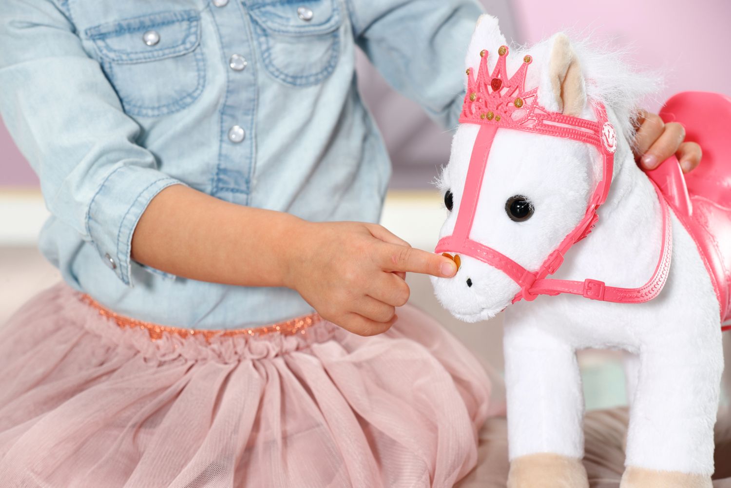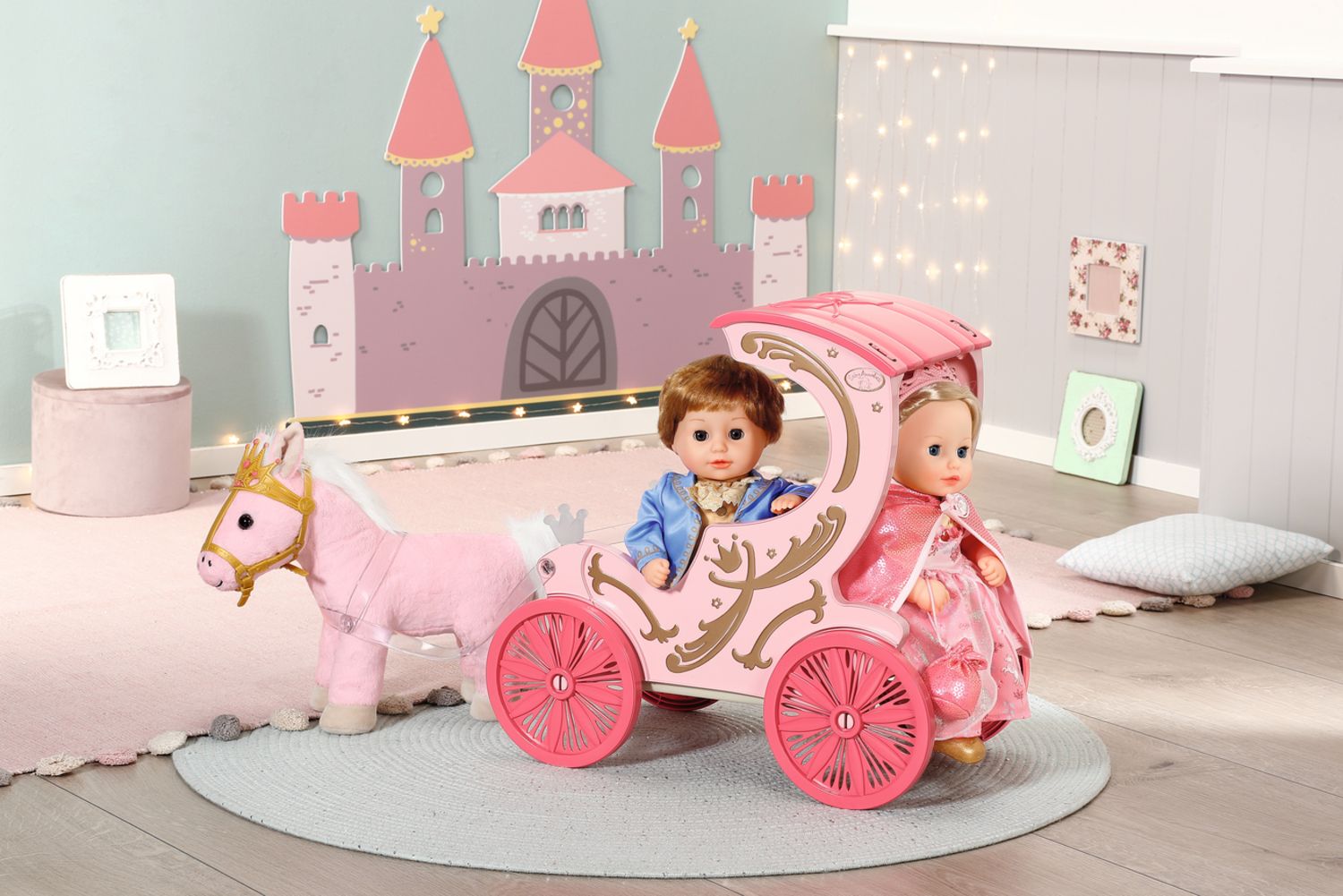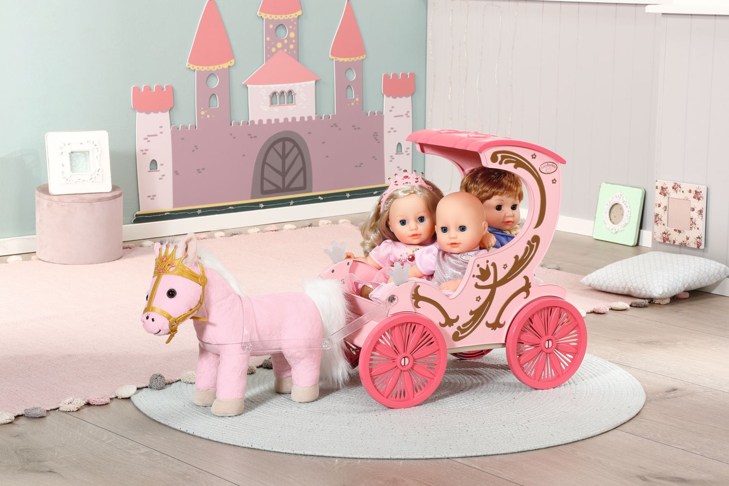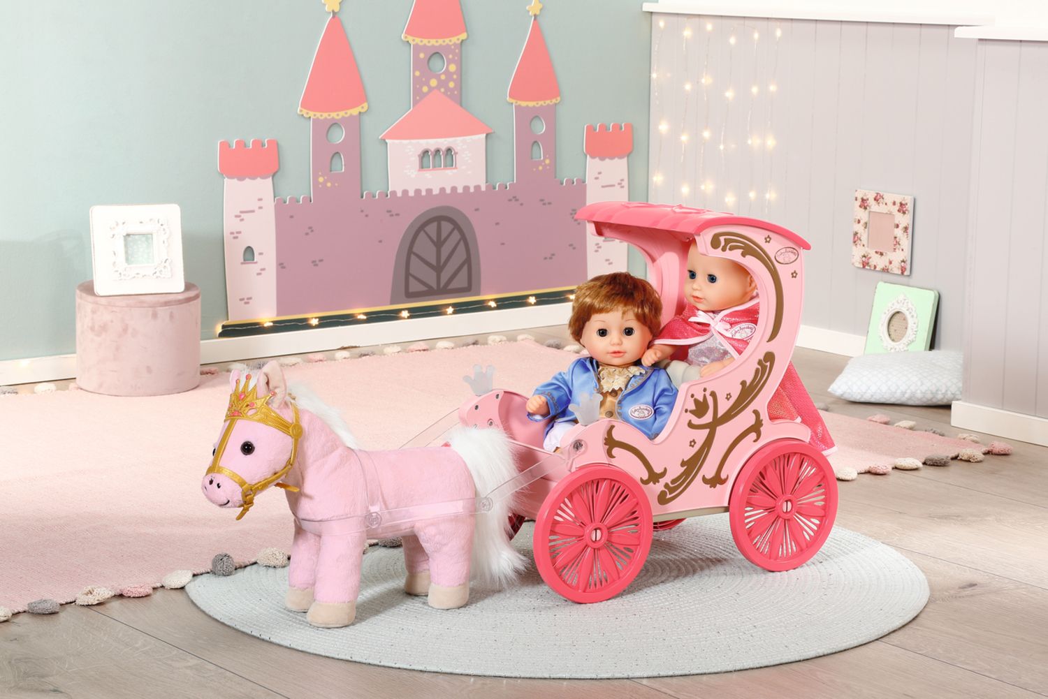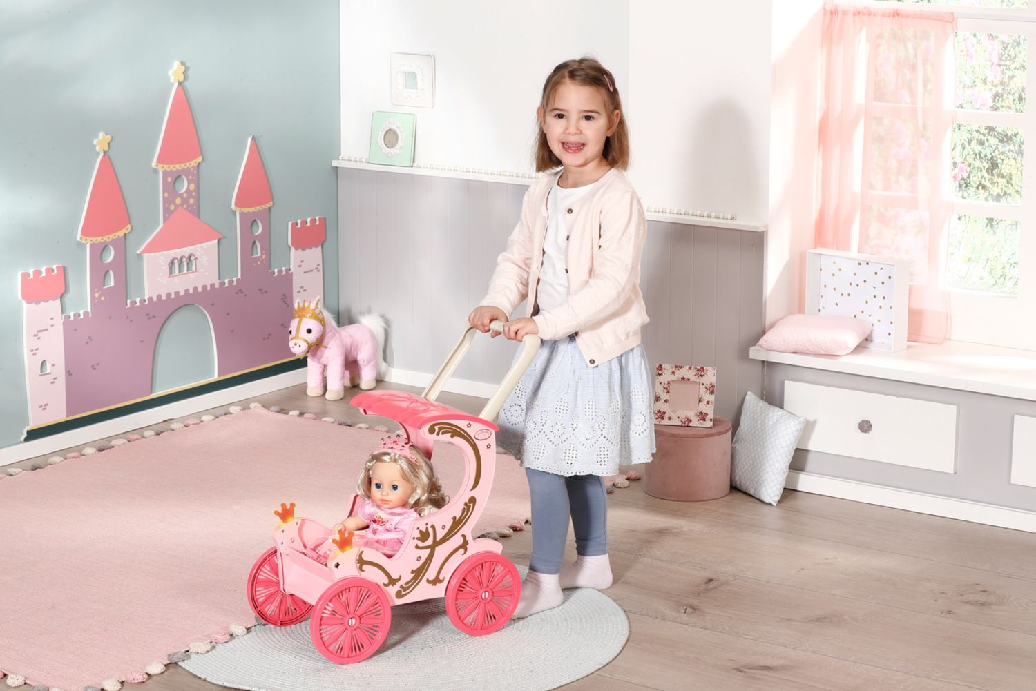 Deze pop van 30 cm heeft een lichaam met zachte vulling en haar van hoge kwaliteit. Ze heeft haar eigen haarborstel bij zich, zodat jij mooie prinsessenkapsels kunt creëren. Om het af te maken, kun je haar de tiara met glinsterende edelstenen opzetten. Haar glanzende, gouden ballerina's piepen onder haar magische, roze jurk met een overrok van tule uit. De japon is zo ontworpen dat zelfs de kleinste handen hem met gemak aan en uit kunnen trekken.