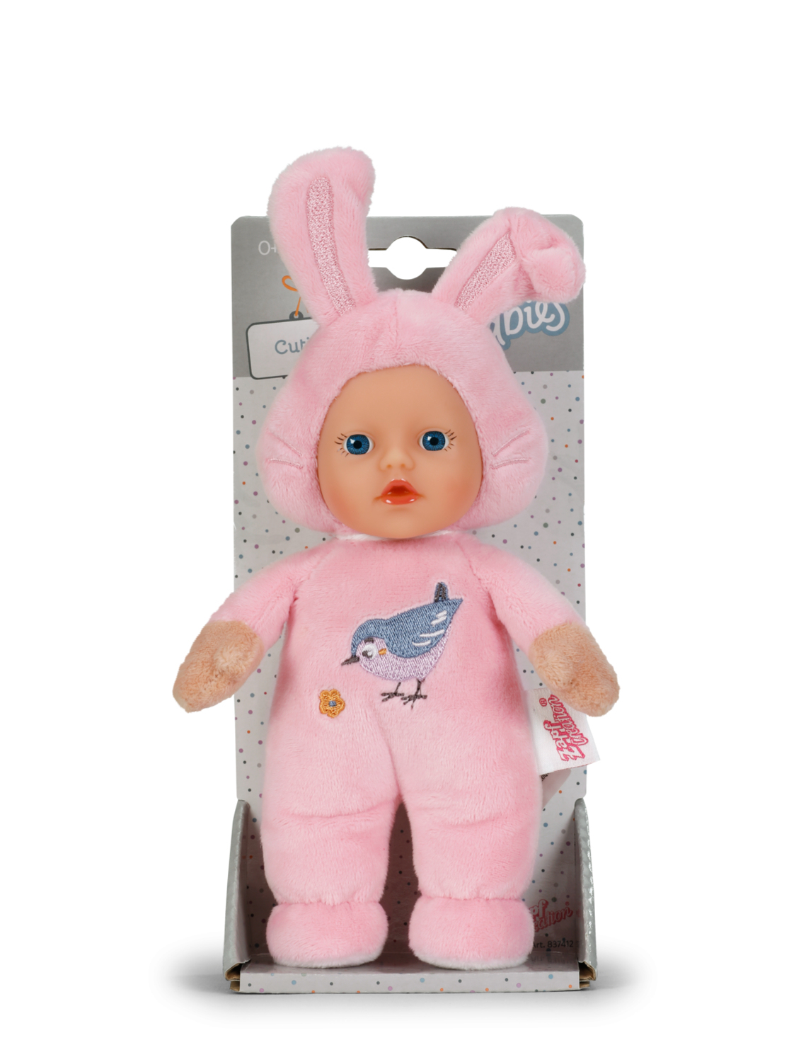 Het kleine konijn zorgt voor schattige dierenmomenten in de kinderkamer. Je kunt de pop tot leven brengen door je vingers in de openingen in de zachte armpjes te steken en de pop te laten bewegen. Het zachte, pluchen lichaam met de lange oren heeft een geïntegreerde rammelaar en nodigt je uit om te knuffelen. Je kunt ook een speentje vastmaken aan een oor. Deze babypop kan gewassen worden: ideaal om mee te spelen en knuffelen, zelfs voor baby’s vanaf 0 jaar.