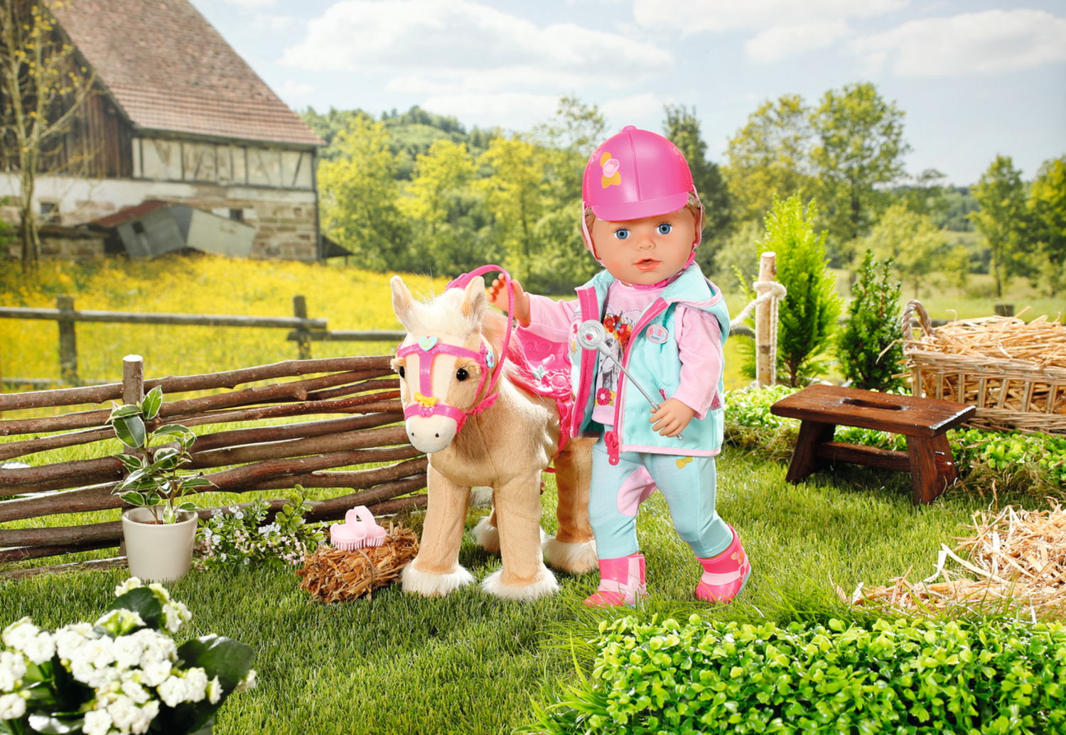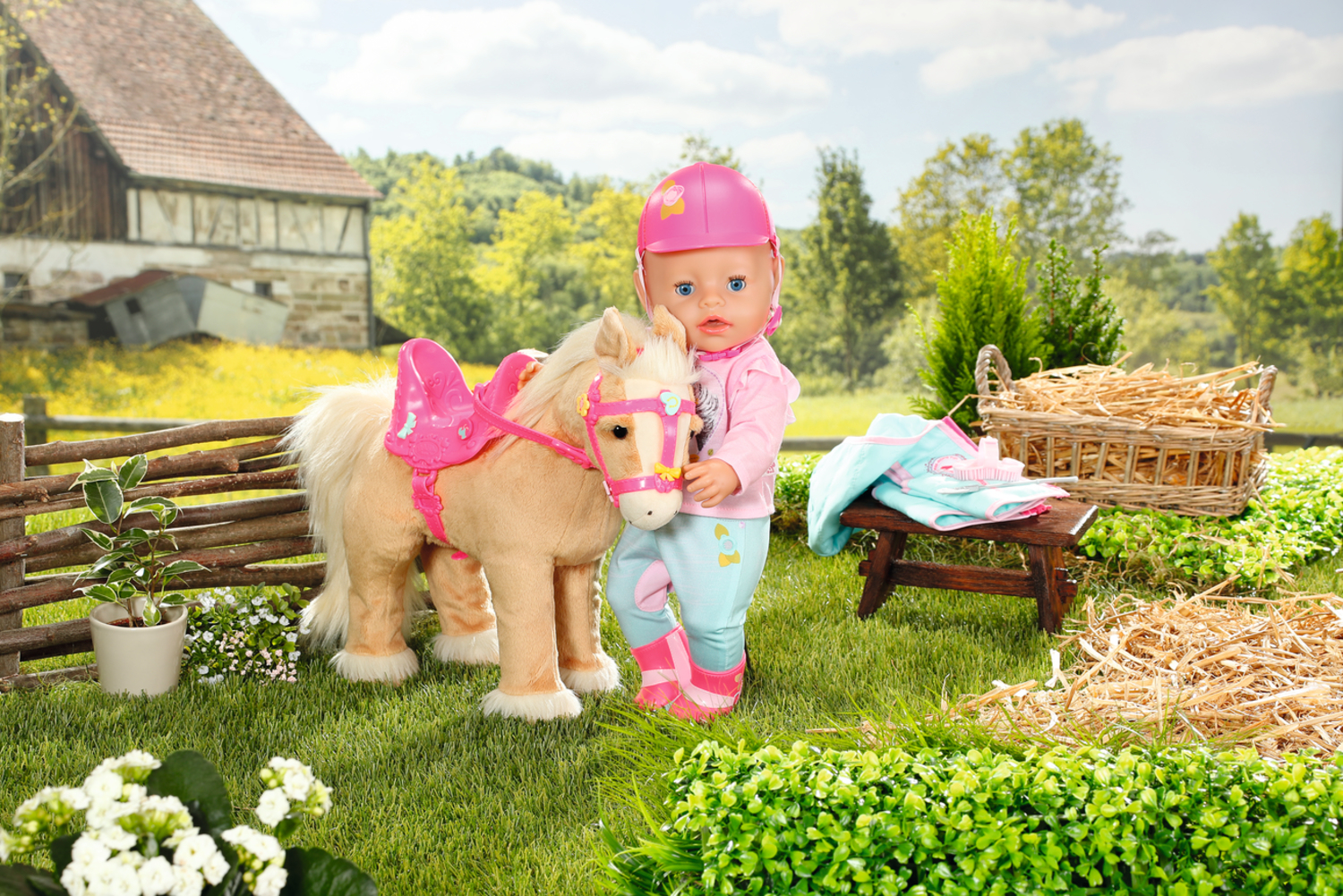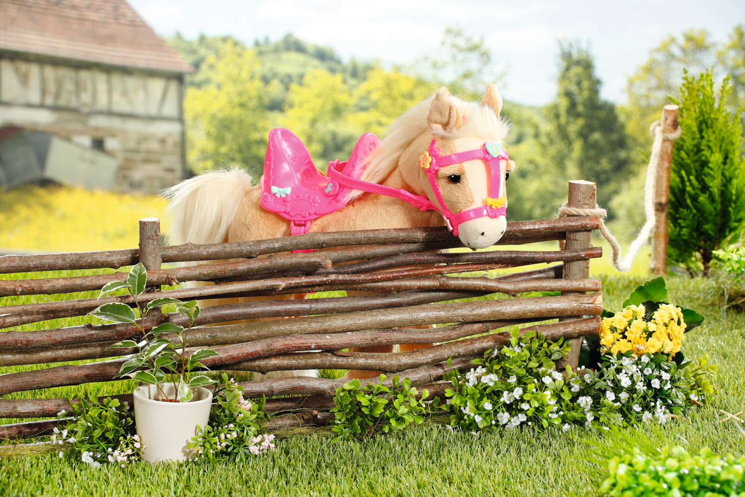 BABY born Mijn schattige paard met zadel, hoofdstel en speldjes.