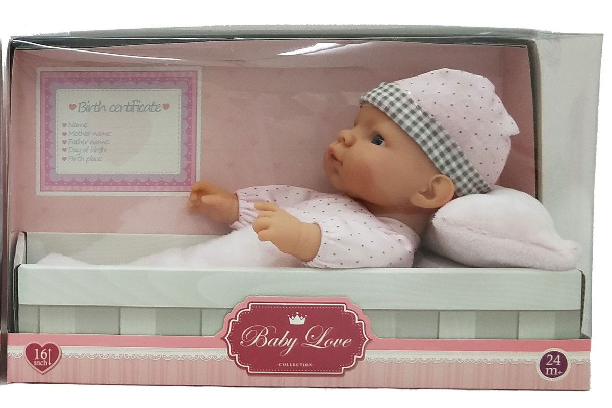 Baby Love, Luxe Babypop 41 cm, met kussentje en slaapzak