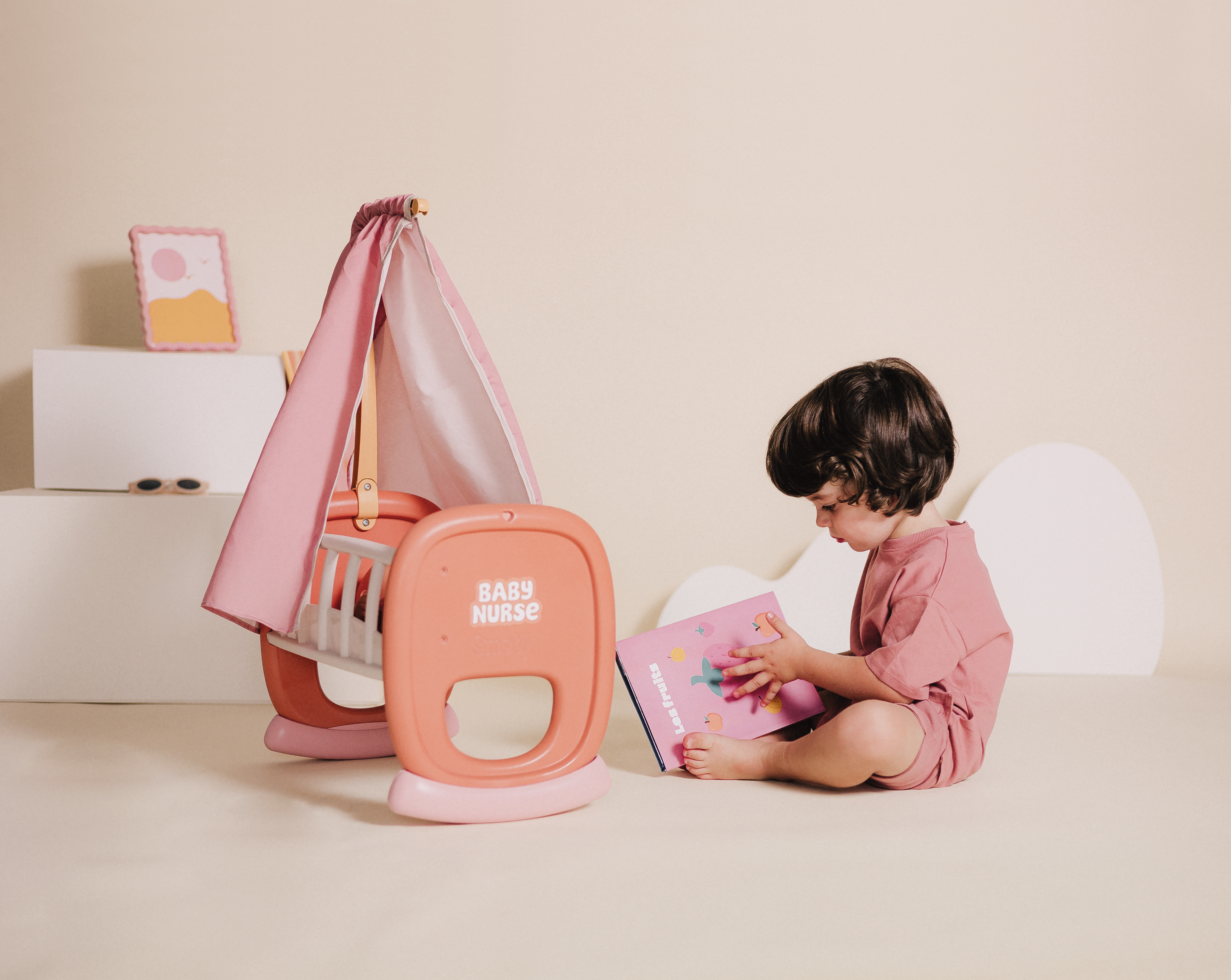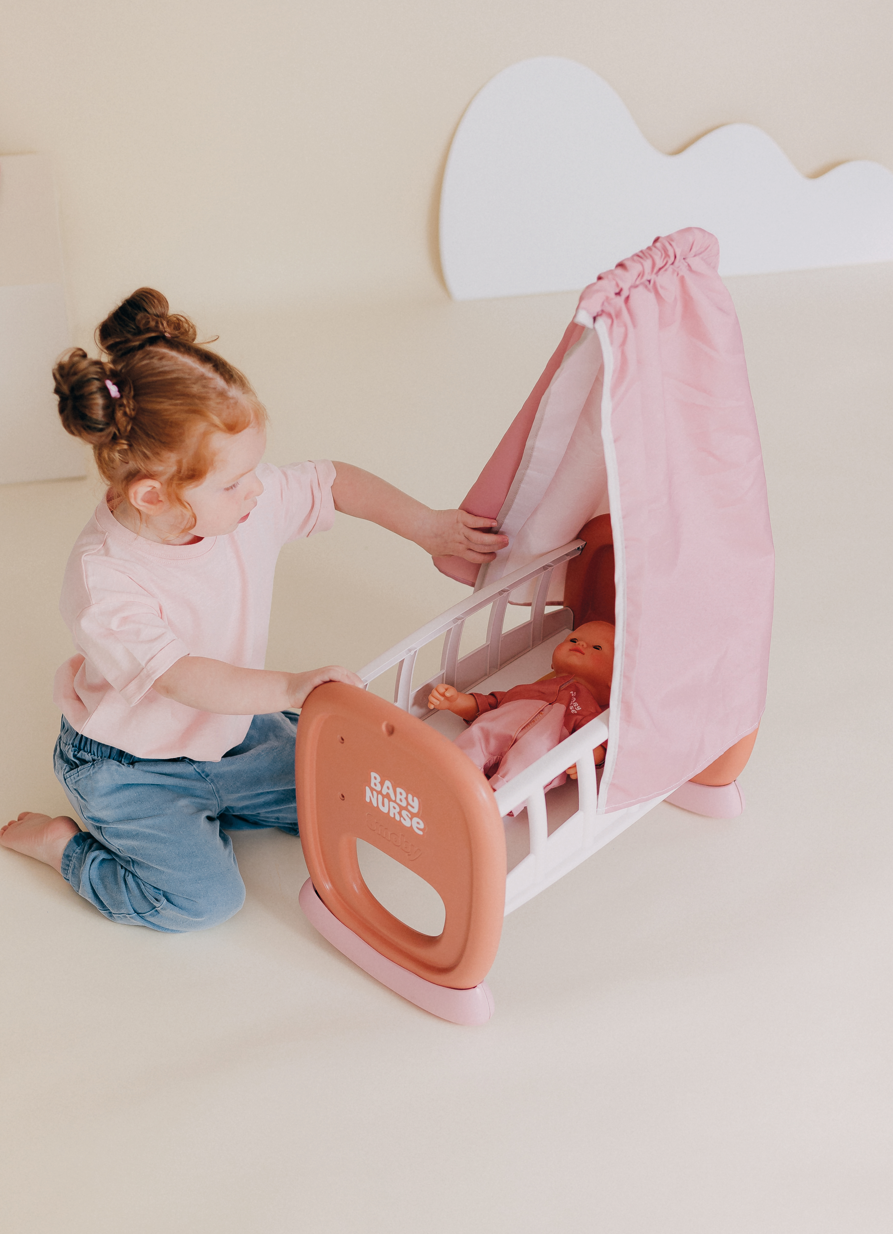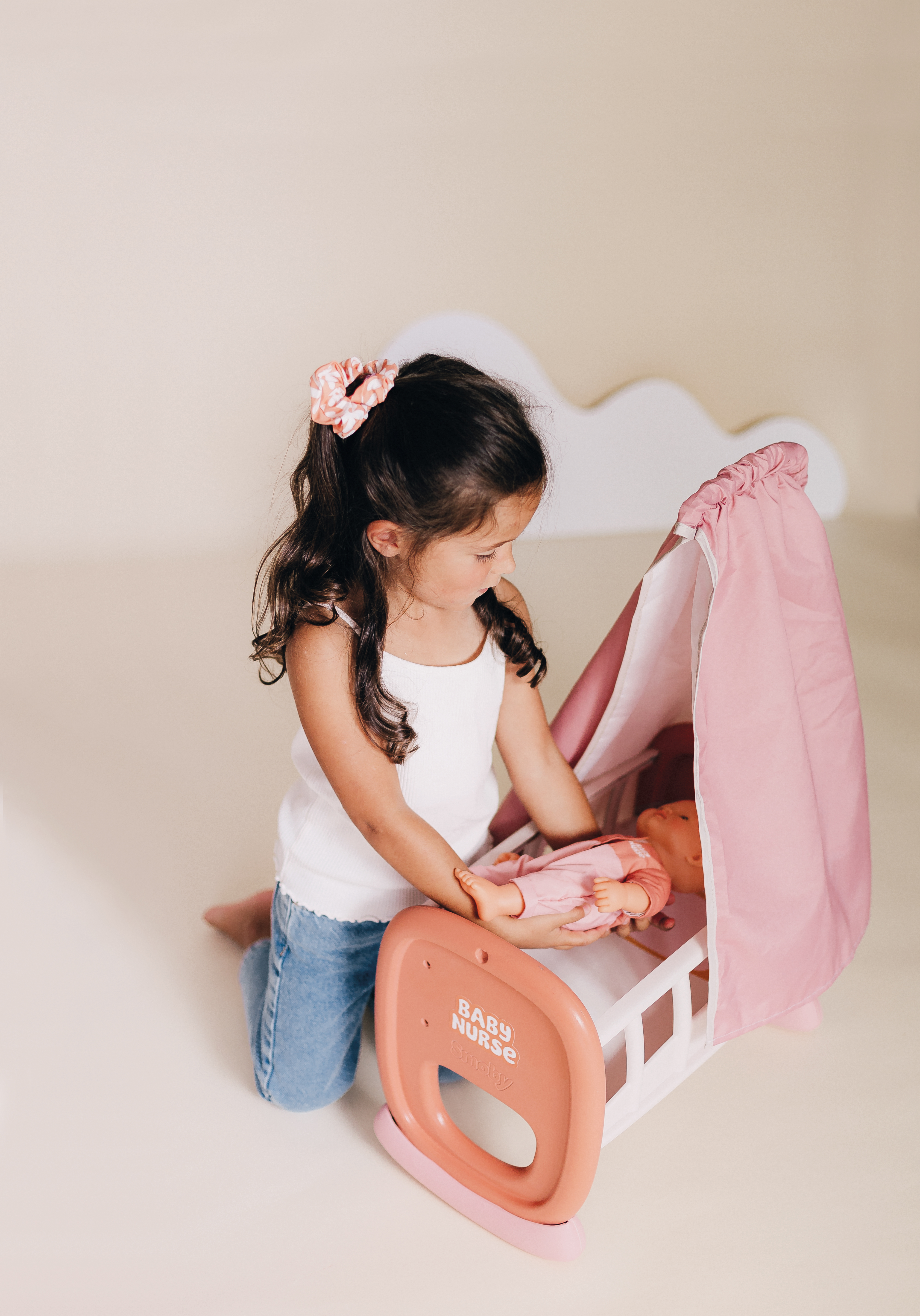 Baby Nurse Schommel Wieg met hemel zonder pop, voor poppen tot 42 cm