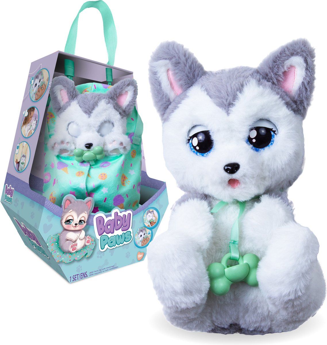 Baby Paws Flow de Husky interactief Hondje in draagtas