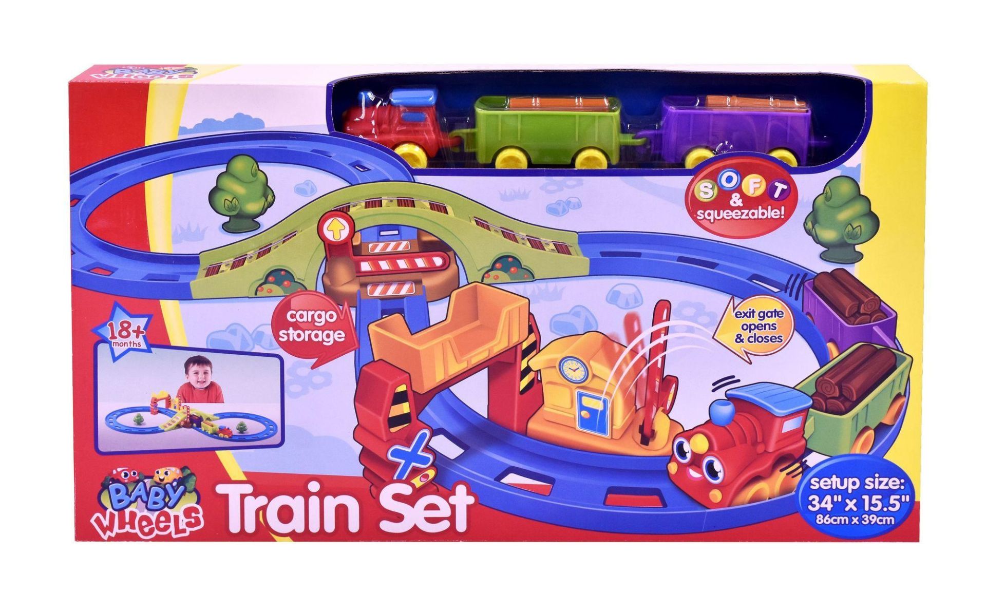 Baby Wheels Treinset 86 x 39 cm, met brug, slagboom, zachte trein + 2 wagons