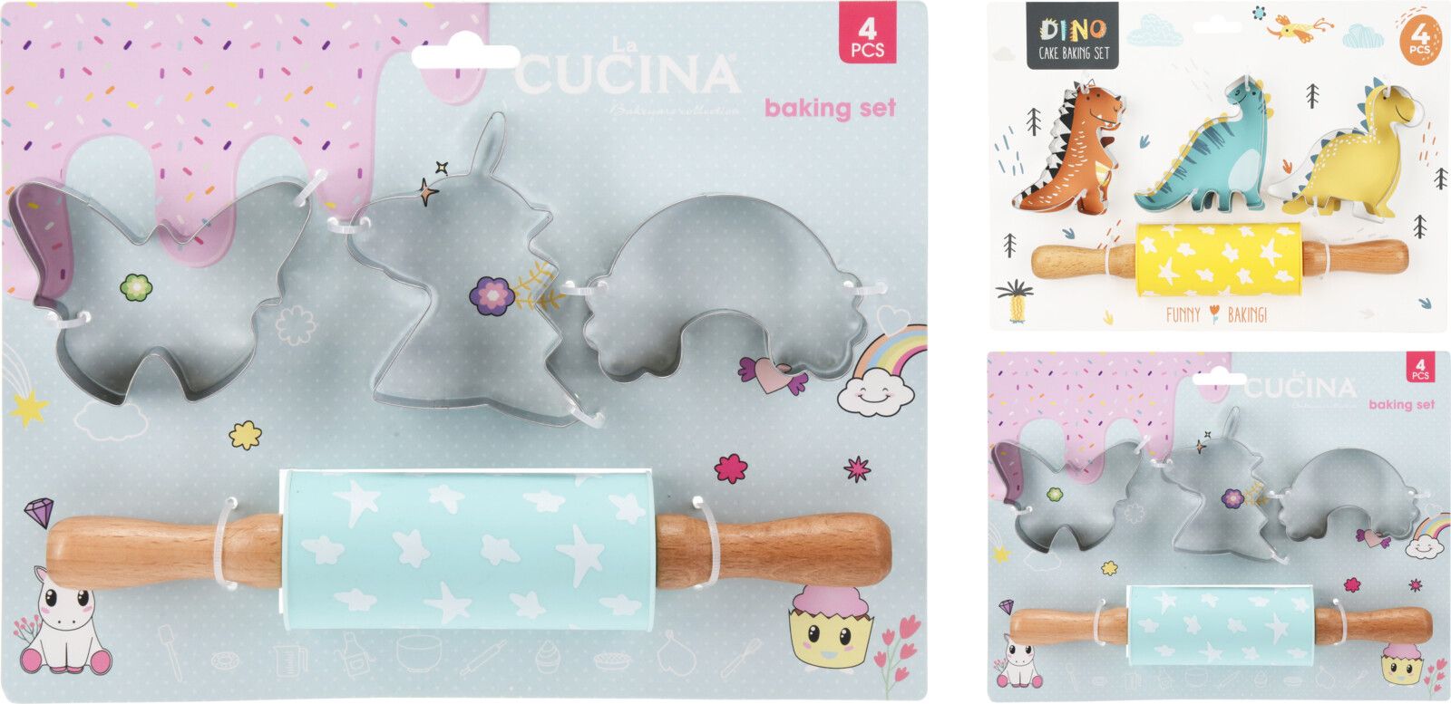 Bakset Unicorn/Dino 4-delig - assorti - prijs per stuk