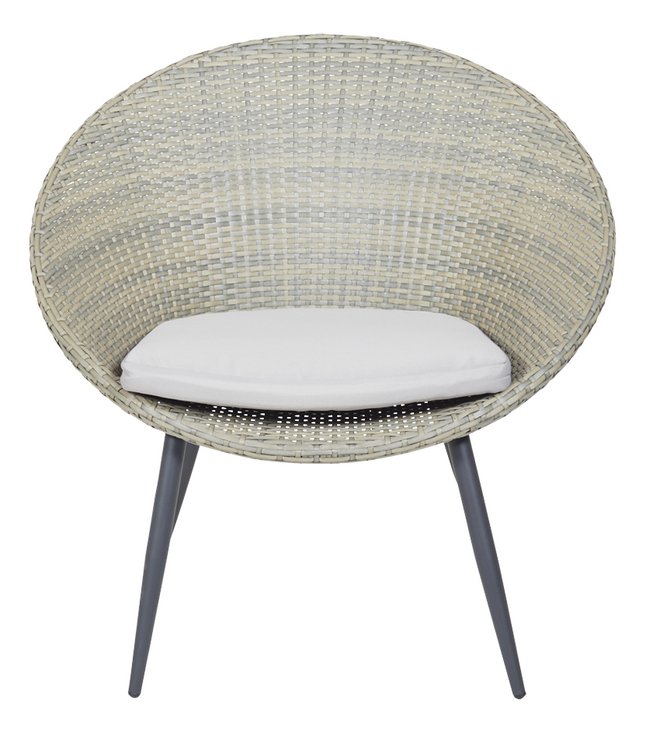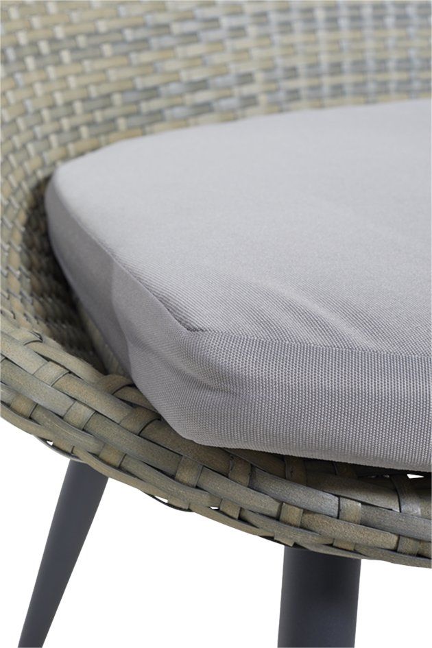 Balkonset Platte Wicker Grijs 2x Loungestoel met Olefin Kussen + Tafel