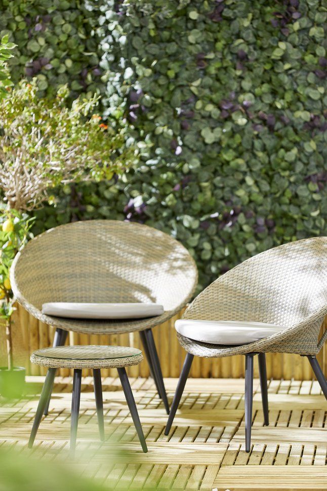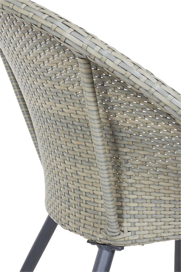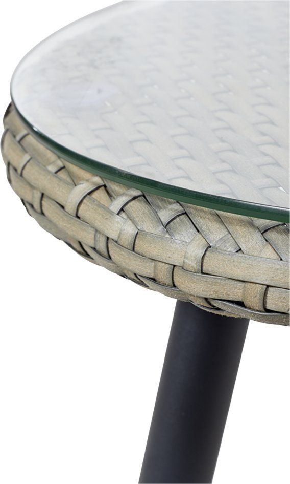 Gezellige tuinset in wicker-stijl. Deze moderne tuinset is een prachtige aanvulling op elk terras, tuin of balkon. Het wordt compleet geleverd met twee uiterst comfortabele fauteuils die zijn ontworpen met bijpassende zitkussens. De tafel heeft een transparant blad, gemaakt van gehard glas.