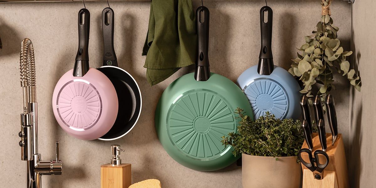 Ballarini Bakpannen Caprera 20-24-28 cm in set Roze Blauw Groen assorti - Keramische Antikleef - alle Vuren - PFAS vrij