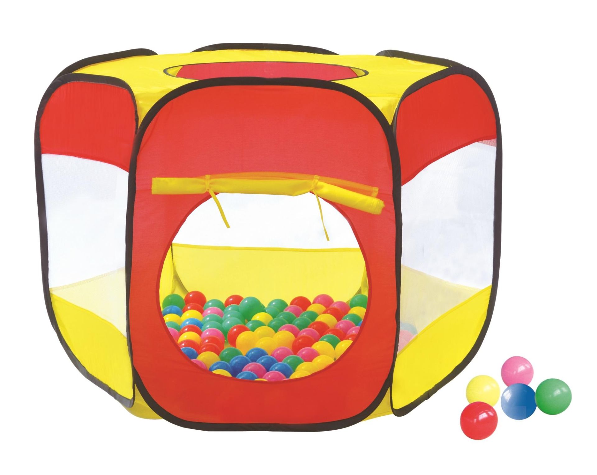 6-hoekige tent met 100 ballenbadballen. Makkelijk op te zetten