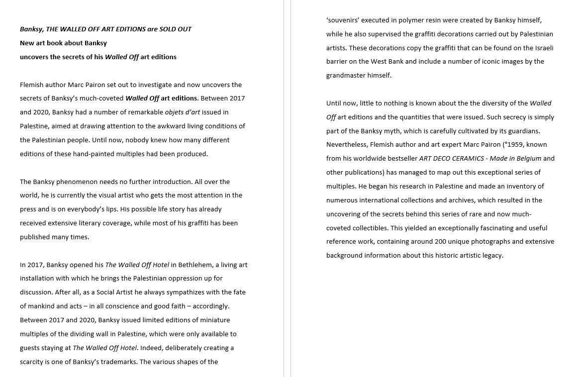 Banksy The Walled Off Kunstedities zijn uitverkocht - NL boek van Marc Pairon