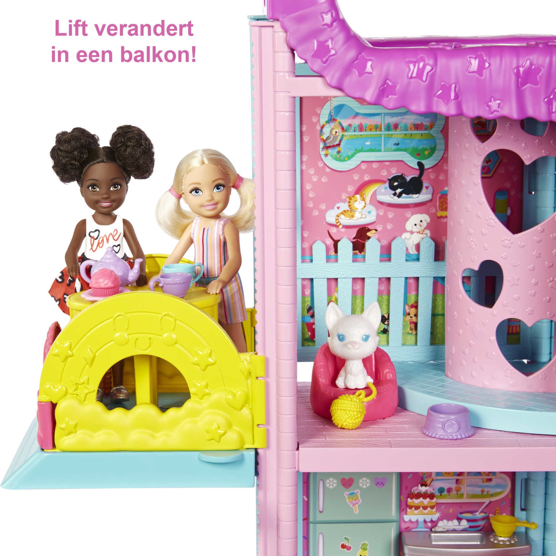Welkom in het poppenhuis van Chelsea en laat je fantasie de vrije loop. Je kunt eindeloos spelen met de 3 verdiepingen en de transformatiefunctie waarmee je geheime speelplekken ontdekt!